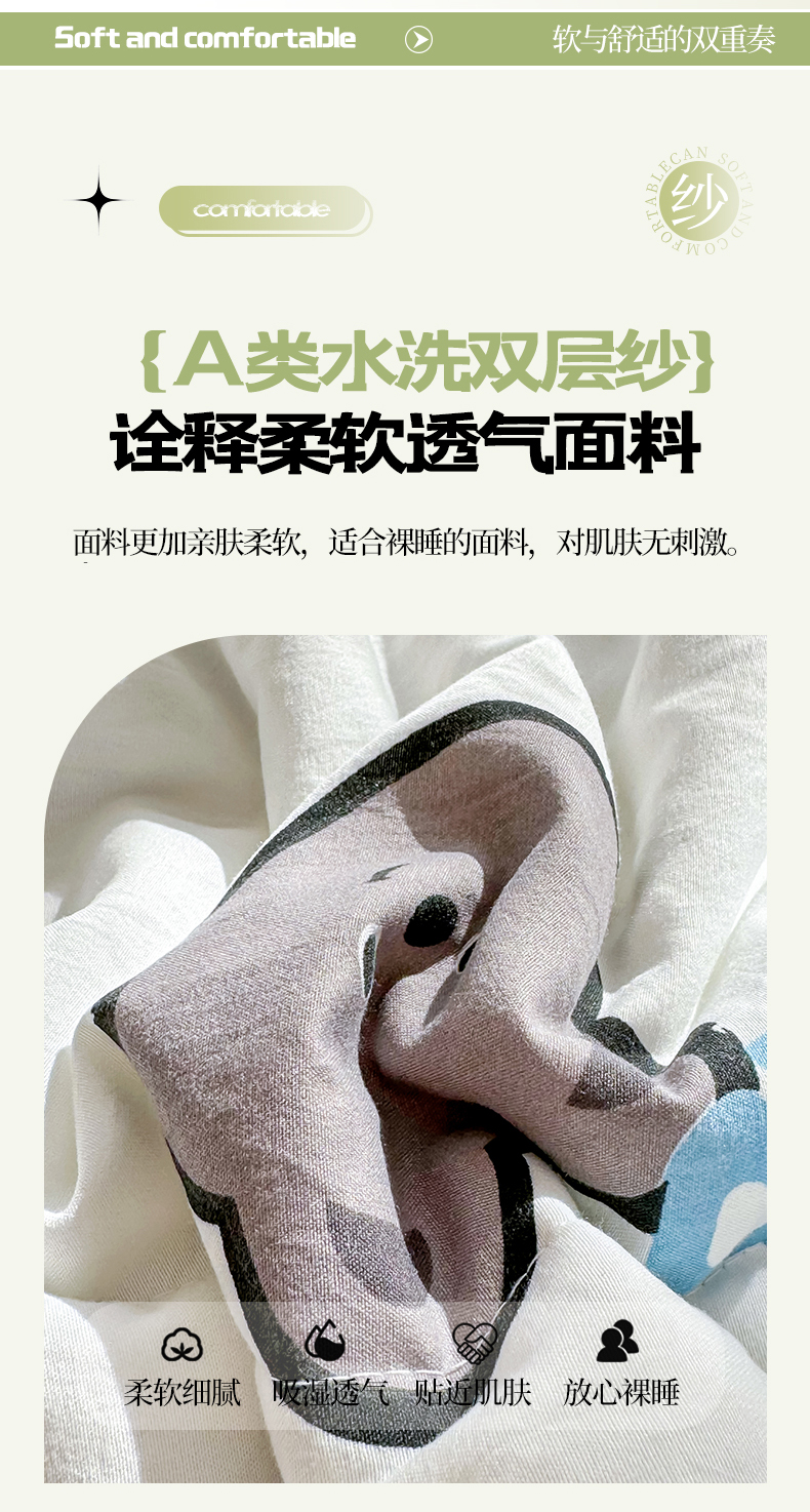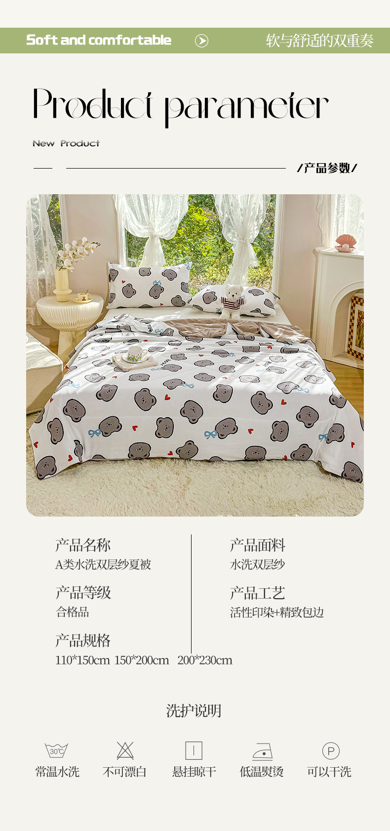 商品名称:梦恬佳-2024新款A类水洗双层纱夏凉被 曲奇小熊