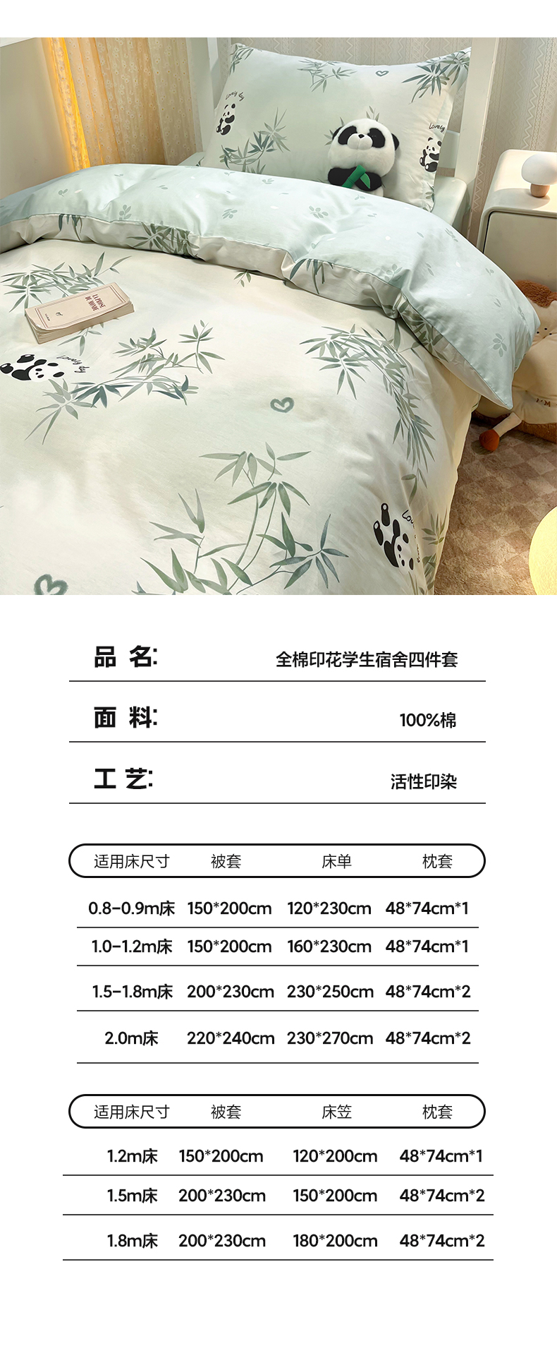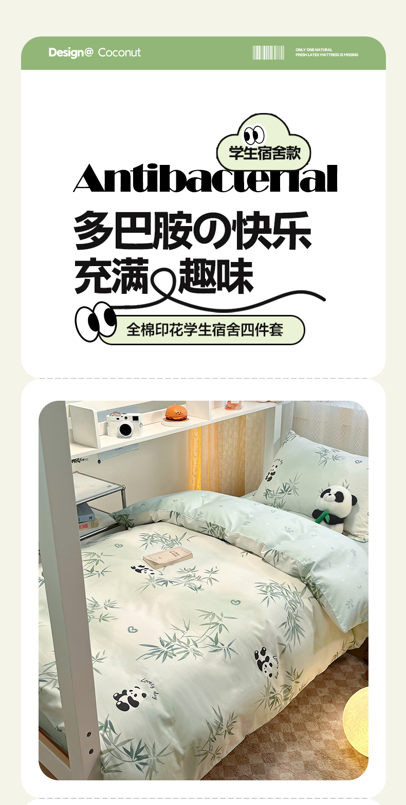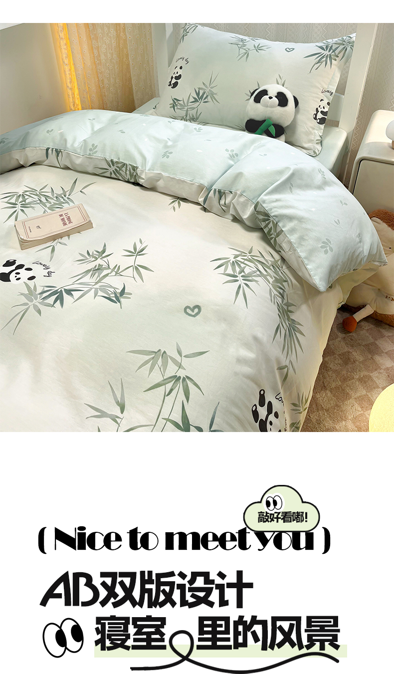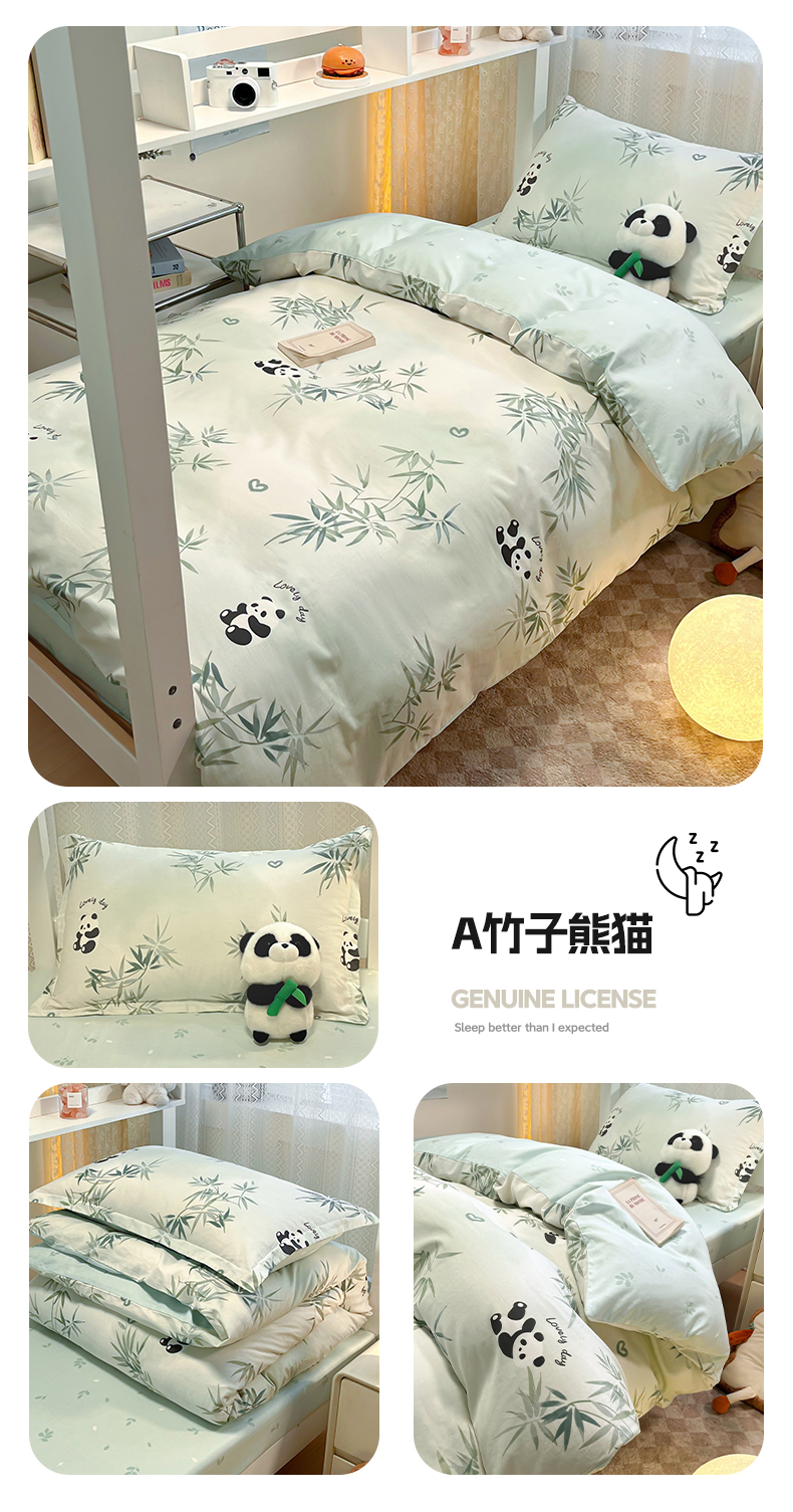 当前位置: 91家纺网 > 商品网购 > 床品套件 > 四件套 > 全棉普通四件套 > 2024新款小清新全棉印花学生宿舍三件套-68系列 A竹子熊猫