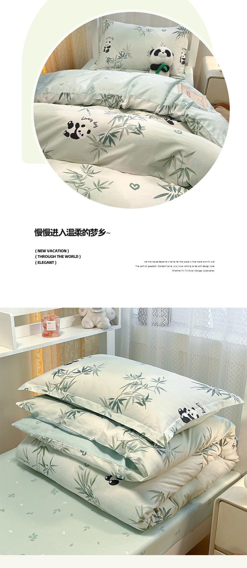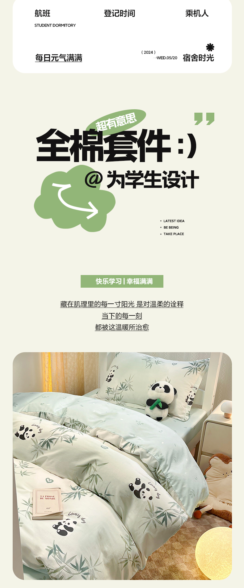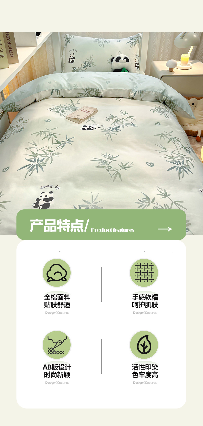 当前位置: 91家纺网 > 商品网购 > 床品套件 > 四件套 > 全棉普通四件套 > 2024新款小清新全棉印花学生宿舍三件套-68系列 A竹子熊猫
