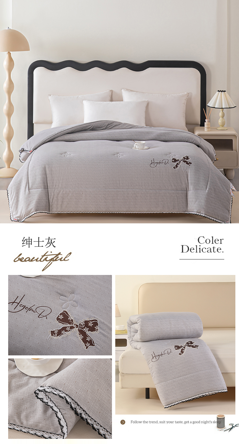 爱宝被业 2024新款糯糯棉绣花纤维被 绅士灰