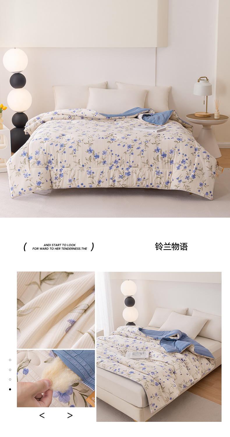 • 91家纺网 家纺一手货源 找家纺 爱宝被业 2024新款提花云纱棉印花被 铃兰物语