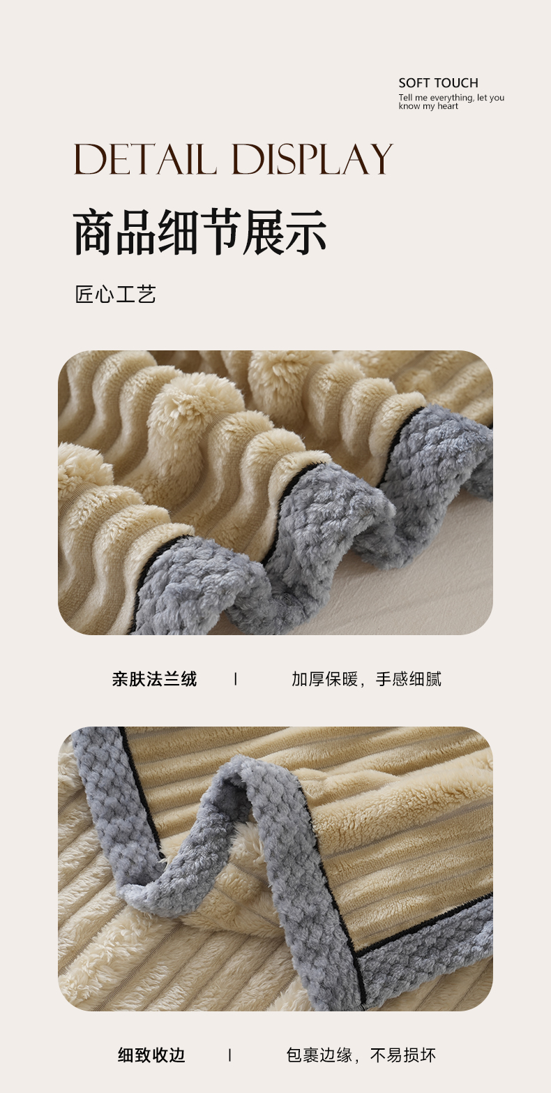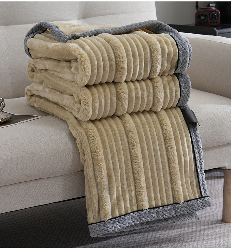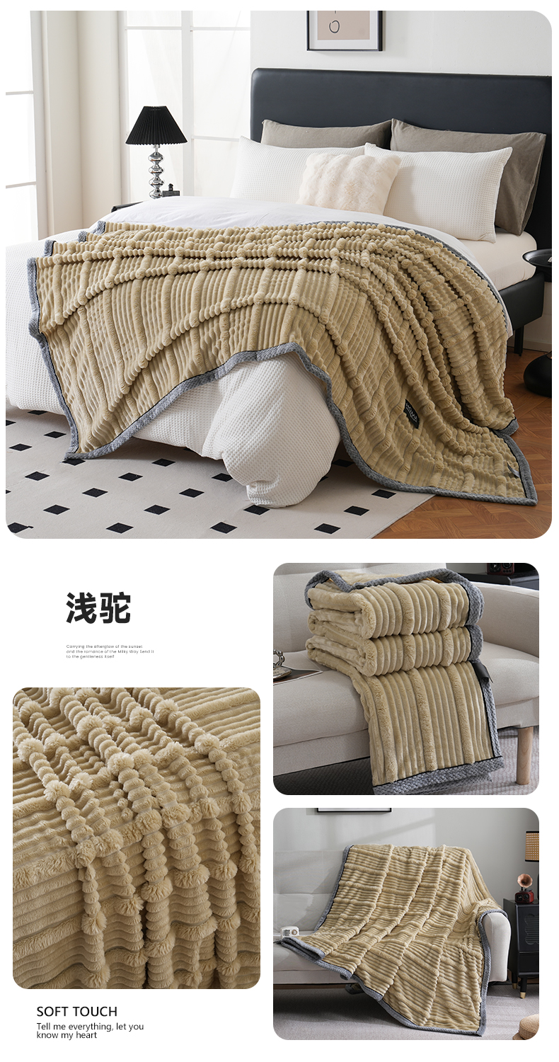 商品名称:巴木赫 2024新款子母抽条兔毛绒绒毯毯子 浅驼