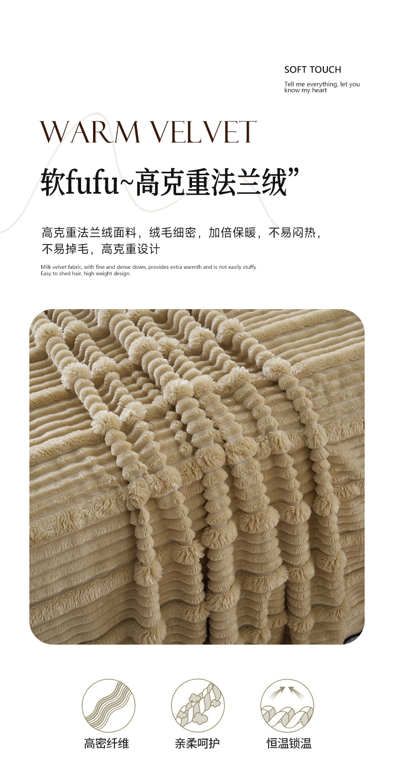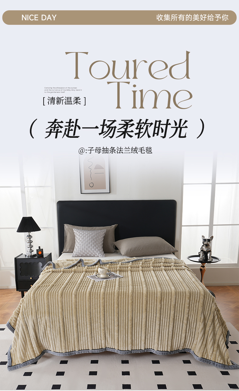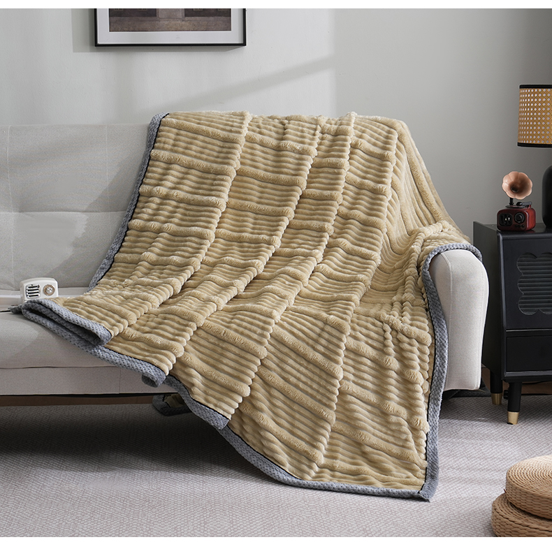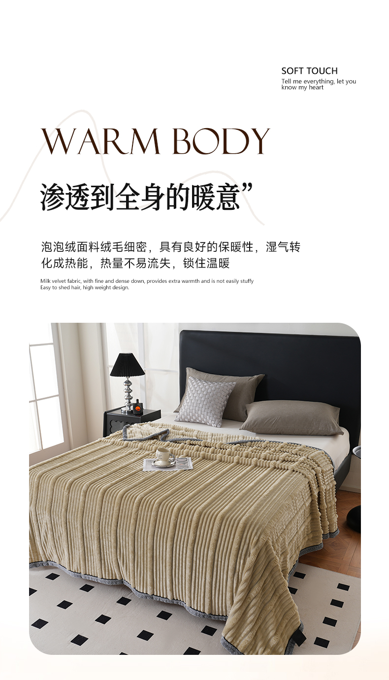 商品名称:巴木赫 2024新款子母抽条兔毛绒绒毯毯子 浅驼