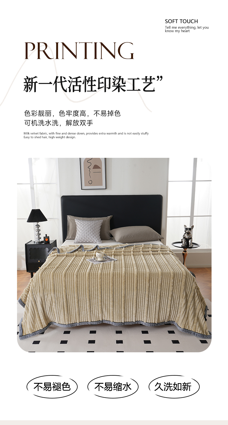 (总)巴木赫 2024新款子母抽条兔毛绒绒毯毯子,宾利蓝,粉色,卡其,墨绿,奶白,葡萄紫,浅驼,深灰,中灰