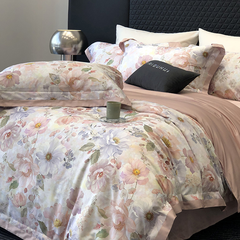(总)太古汇家居 2025新款活性数码印花四件套,丽奥娜-松石绿,丽奥娜-杏子灰,丽奥娜-樱落紫,莉安娜-粉,莉安娜-卡其,莉安娜-绿,西莉娅-淡紫,西莉娅-粉色