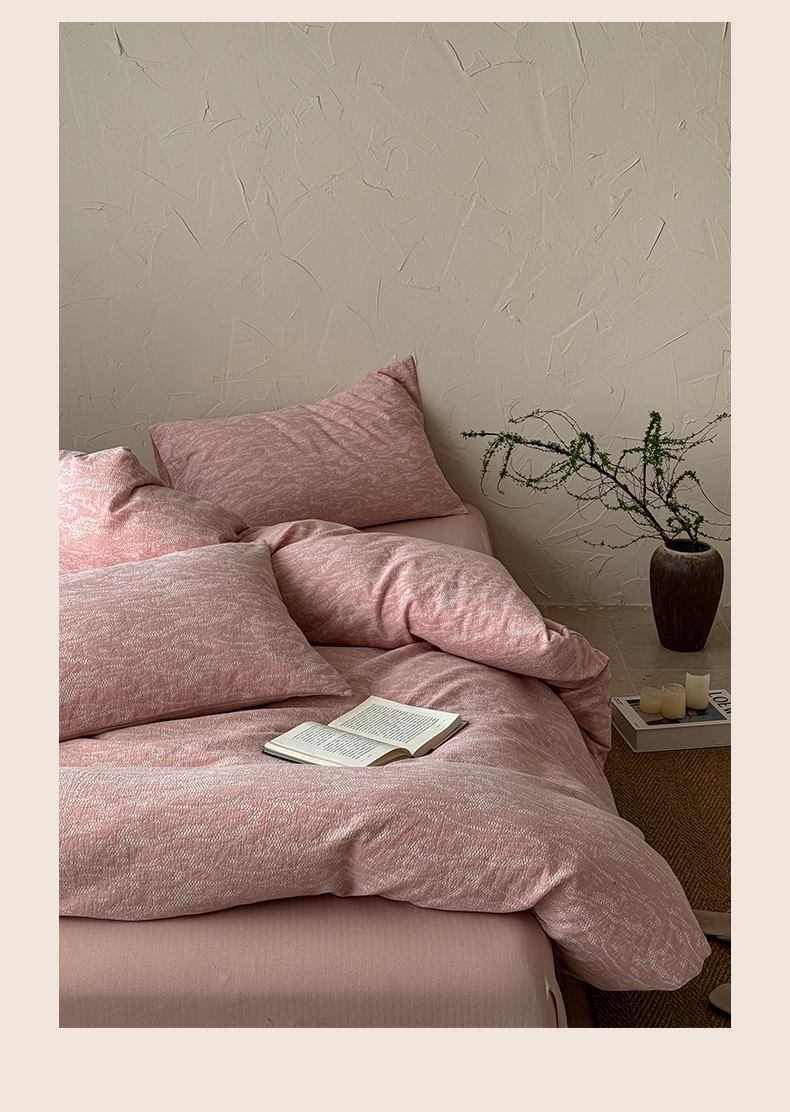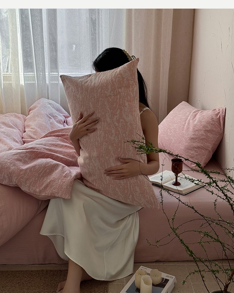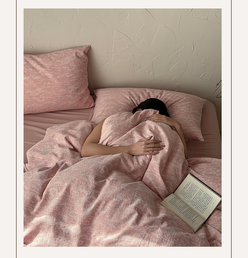 山舍家居 2025新款色织针刺子提花四件套-無由 無由-粉