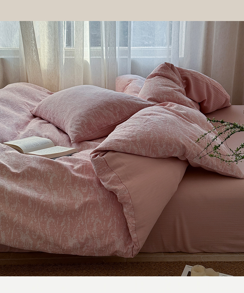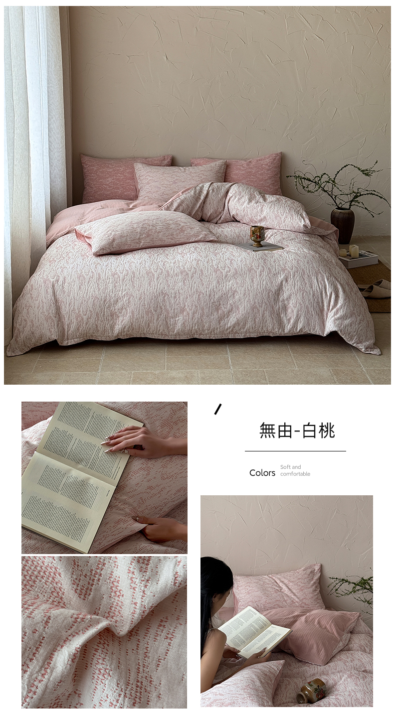 商品名称:山舍家居 2025新款色织针刺子提花四件套-無由 無由-粉