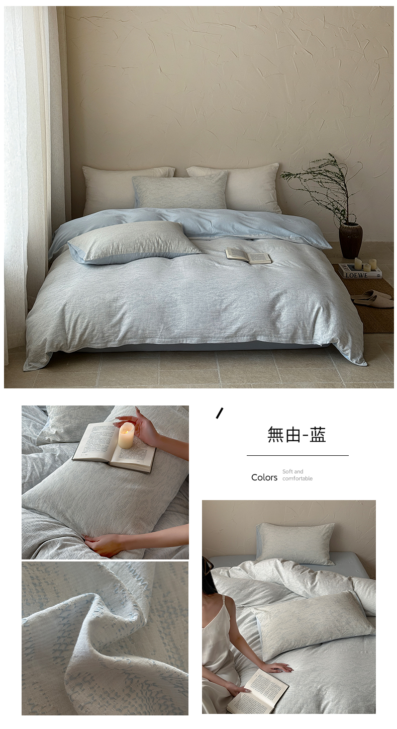 (总)山舍家居 2022新款双层纱布四件套,莱茵蓝,清绿,透白,雅灰,芥黄,裸粉,茶卡,甜白,星蓝,摩卡