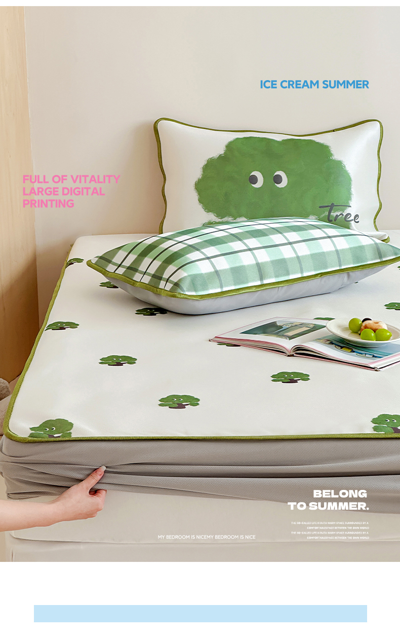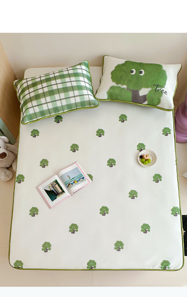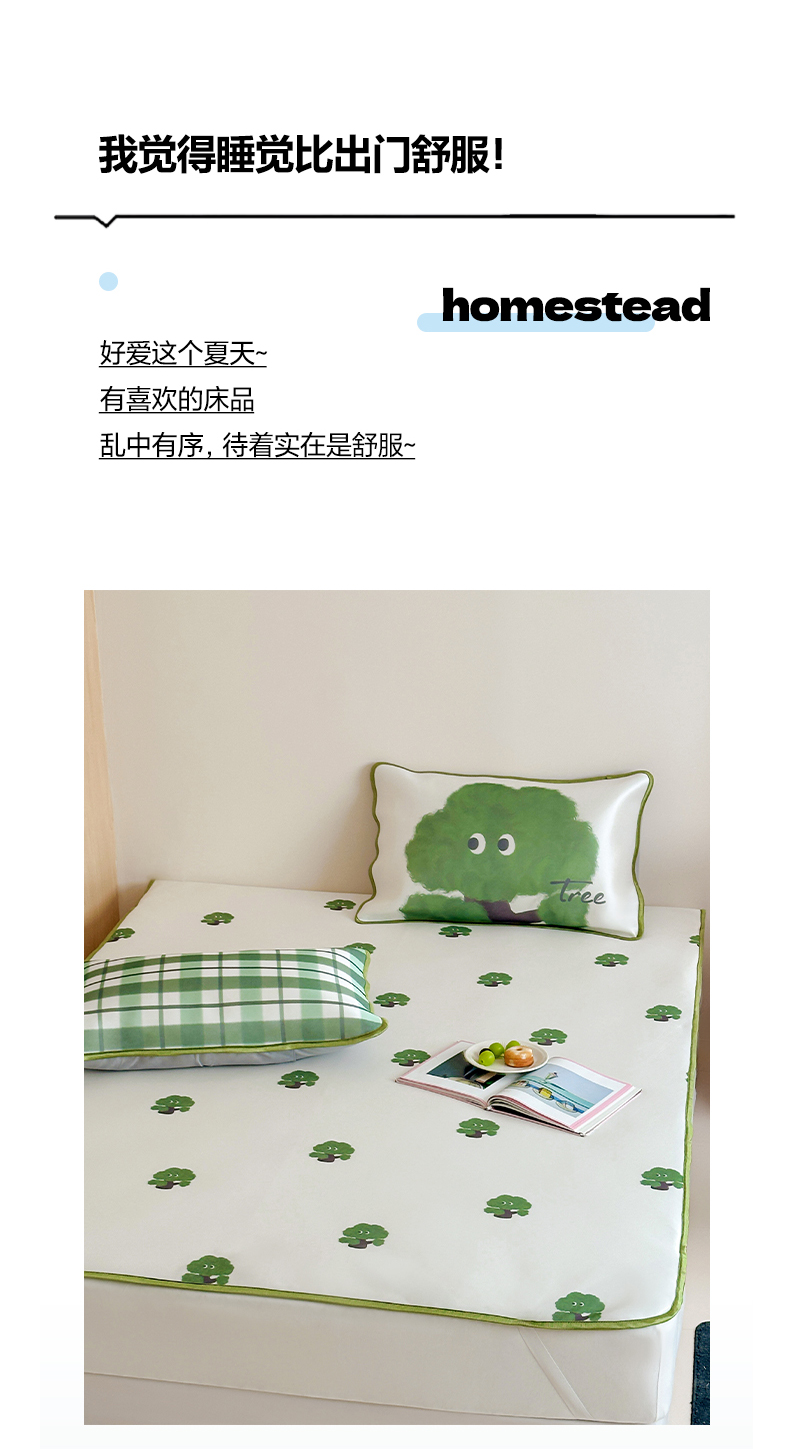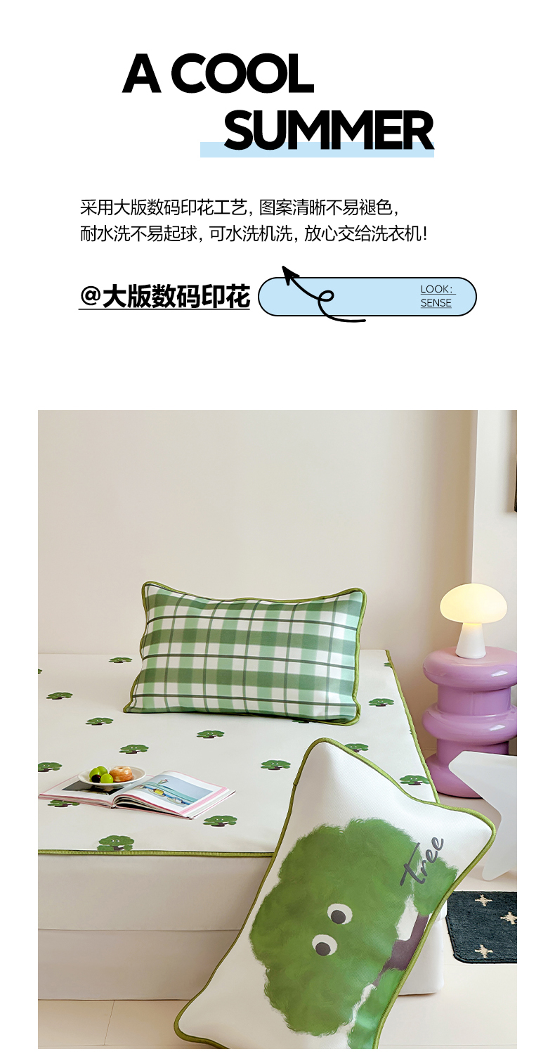 如一2025A类ins大版数码卡通印花冰丝凉感席 绿森林-床席