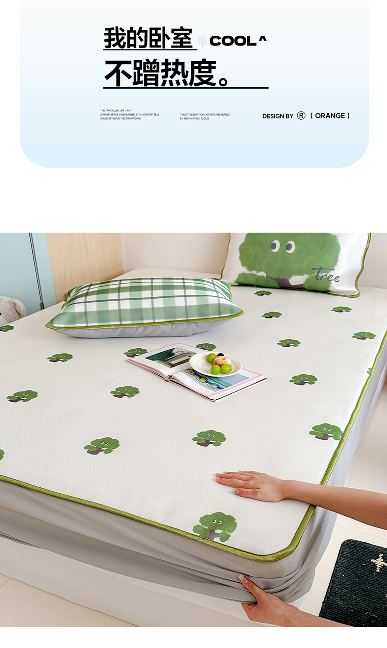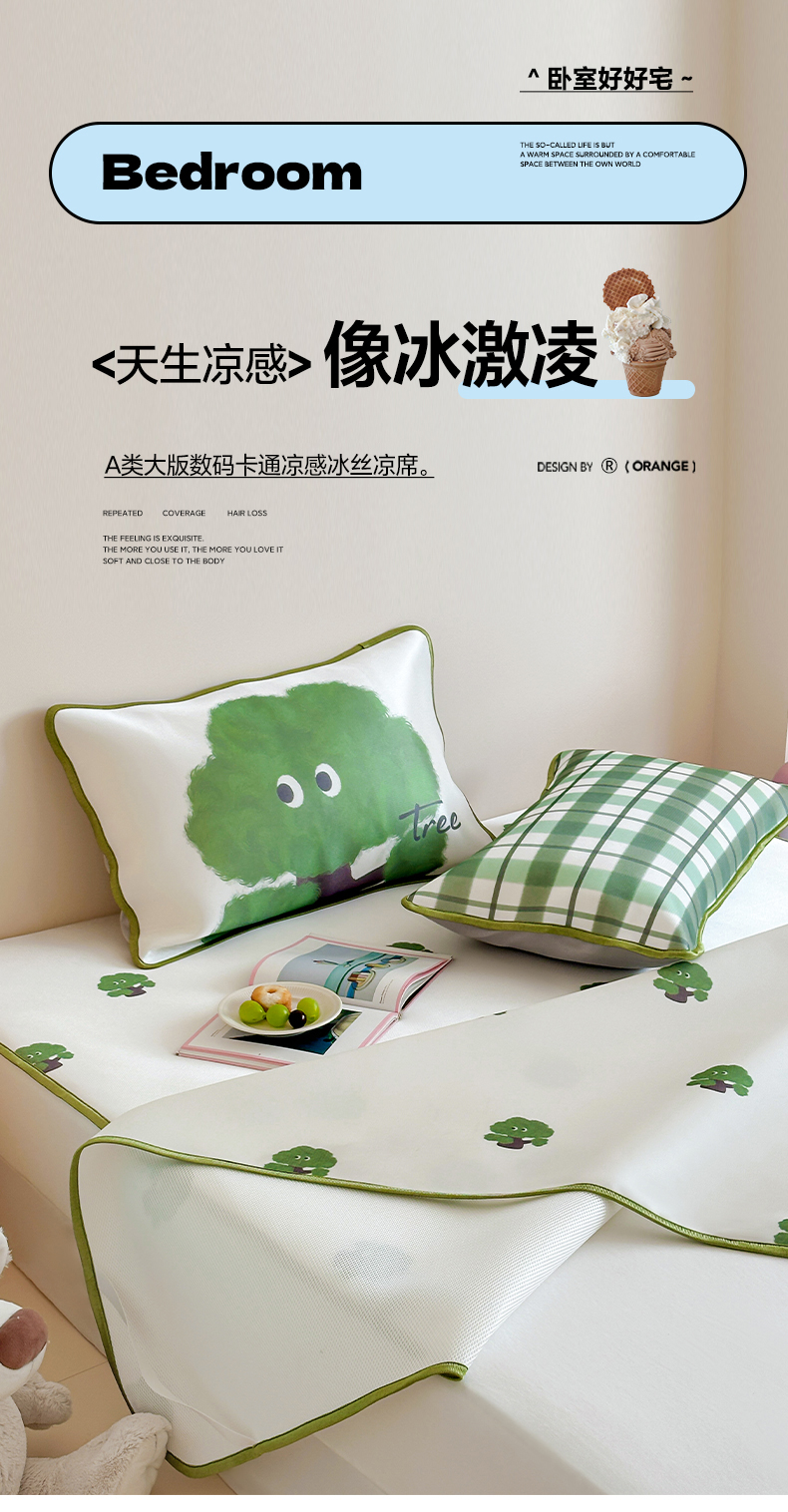 • 91家纺网 家纺一手货源 找家纺 如一2025A类ins大版数码卡通印花冰丝凉感席 绿森林-床席