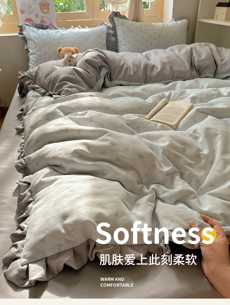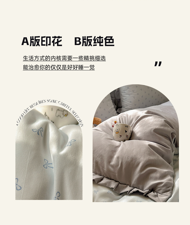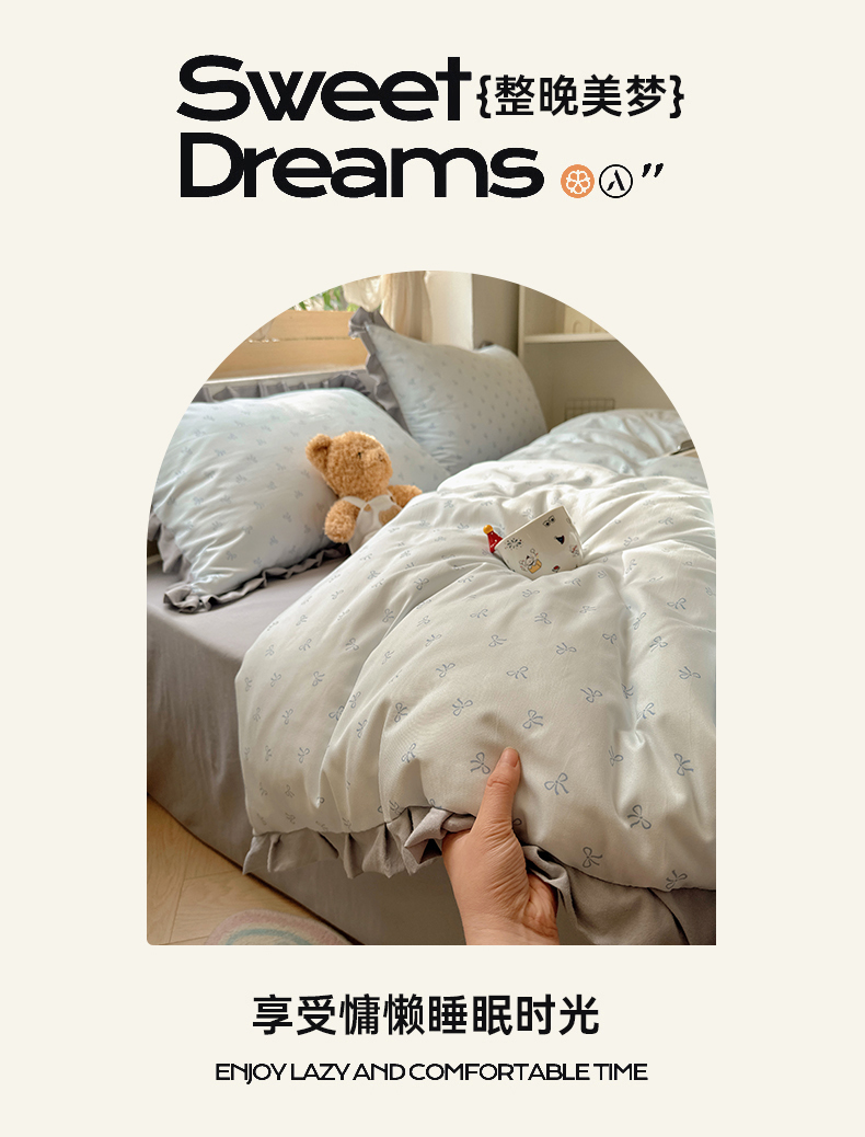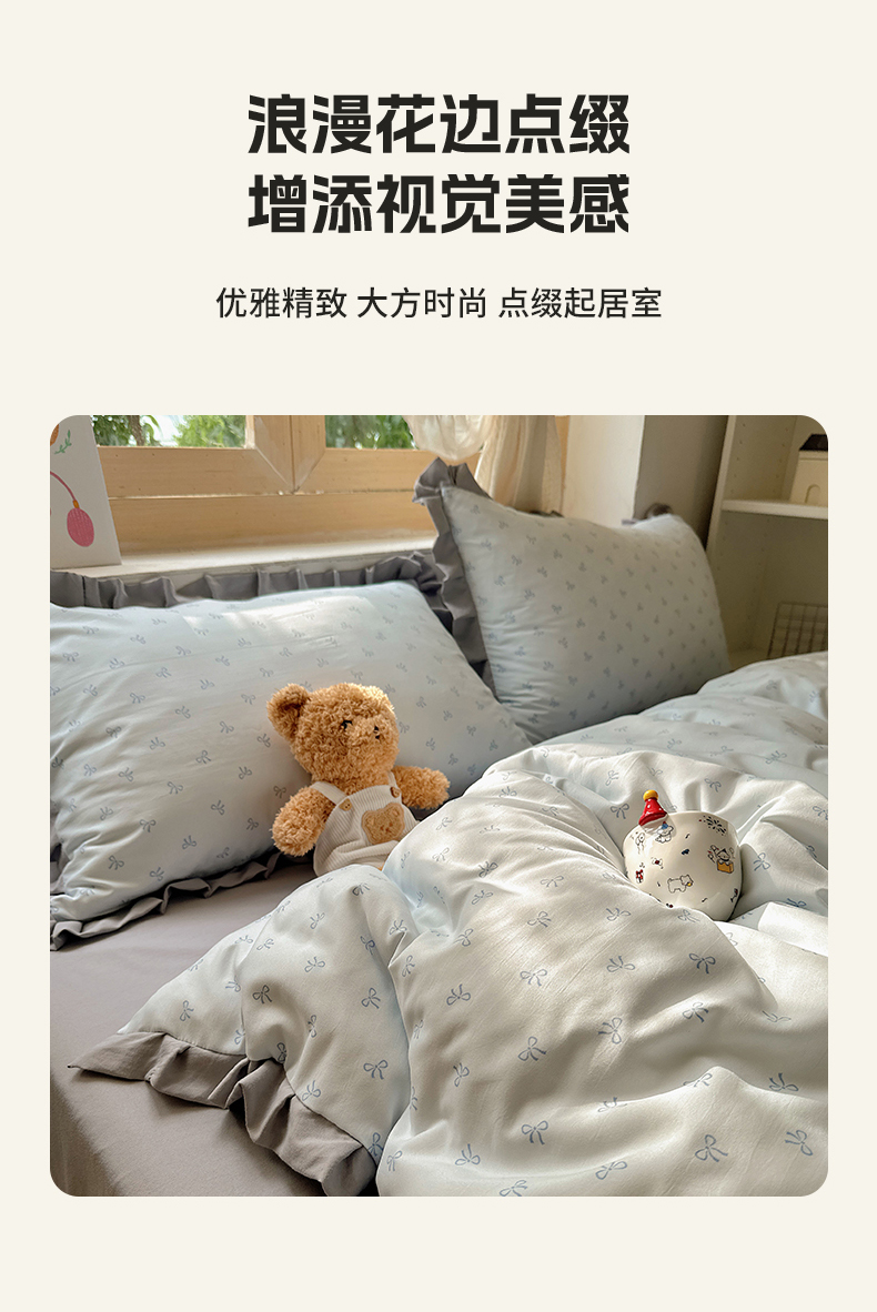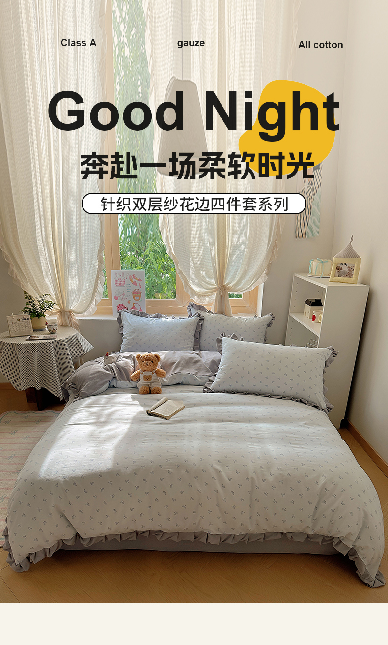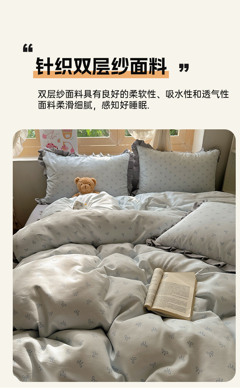 当前位置: 91家纺网 > 商品网购 > 床品套件 > 四件套 > 双层纱四件套 > 韩巢家纺 2025新款针织双层纱花边款被套直播热销款四件套学生宿舍床单三件套-(提供卖家秀) 可爱多二