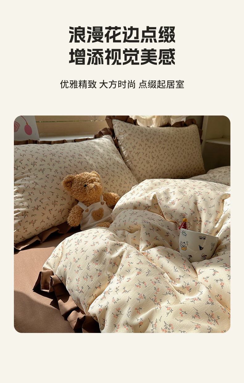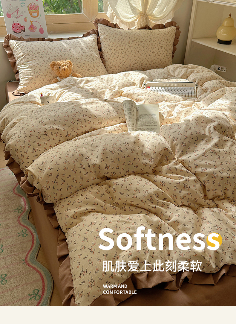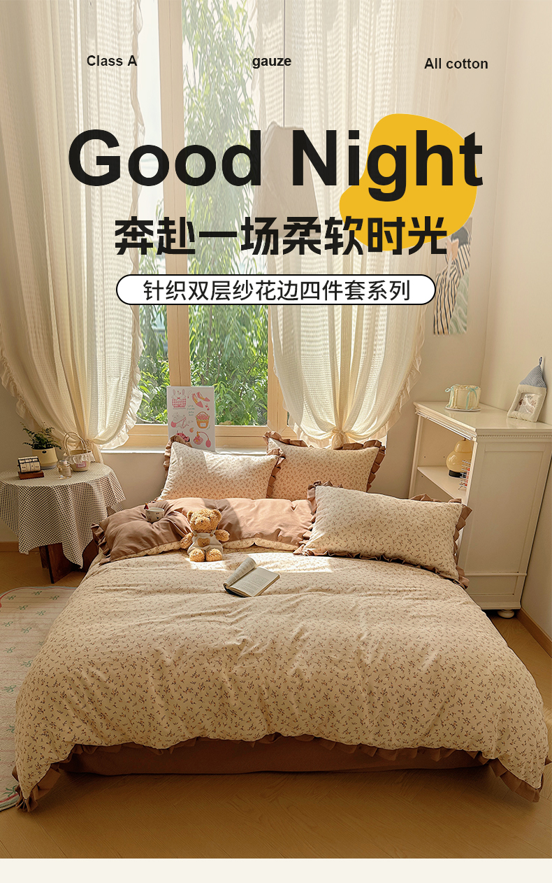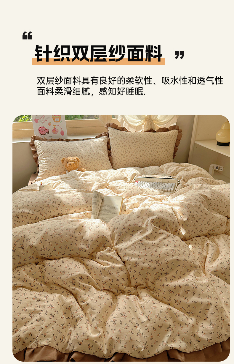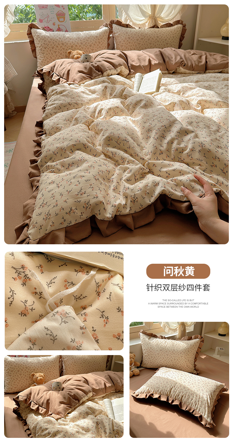 当前位置: 91家纺网 > 商品网购 > 床品套件 > 四件套 > 双层纱四件套 > 韩巢家纺 2025新款针织双层纱花边款被套直播热销款四件套学生宿舍床单三件套-(提供卖家秀) 问秋黄