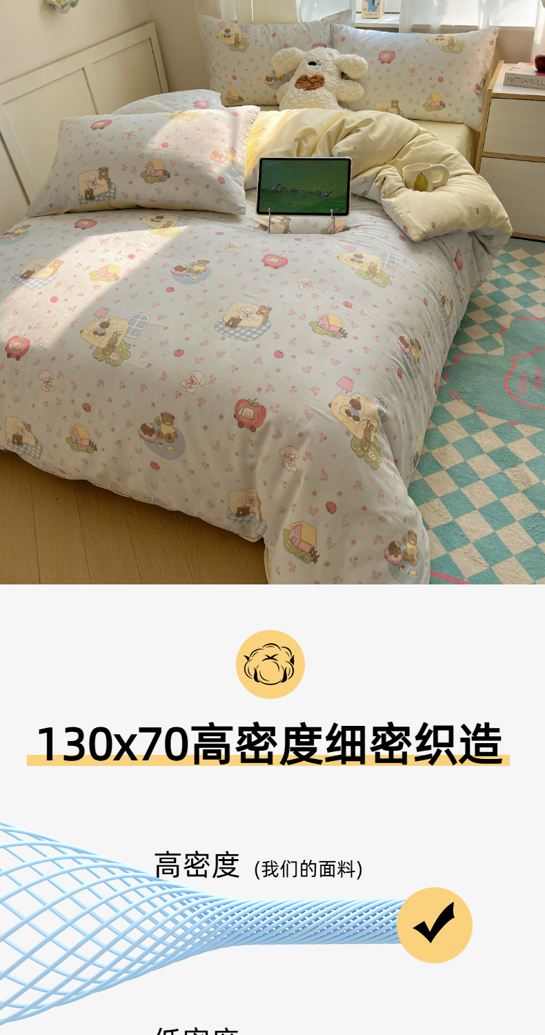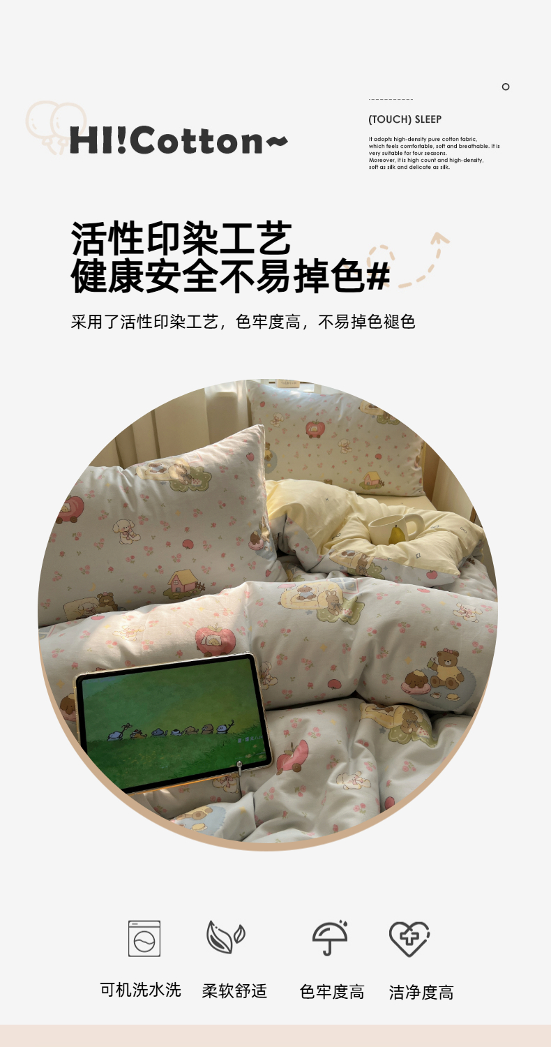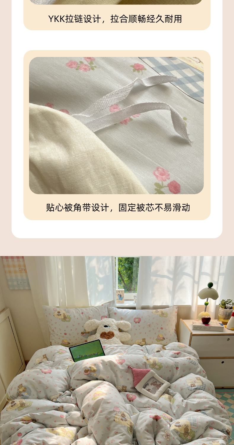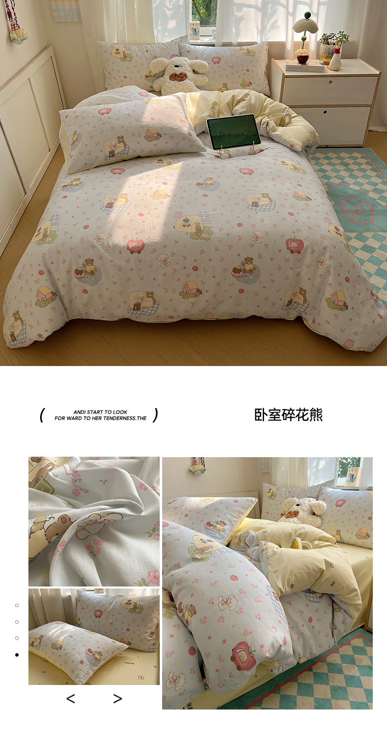 商品名称:六巷胡同 2025新款INS卡通减龄可爱风全棉四件套(开学季系列) 卧室碎花熊