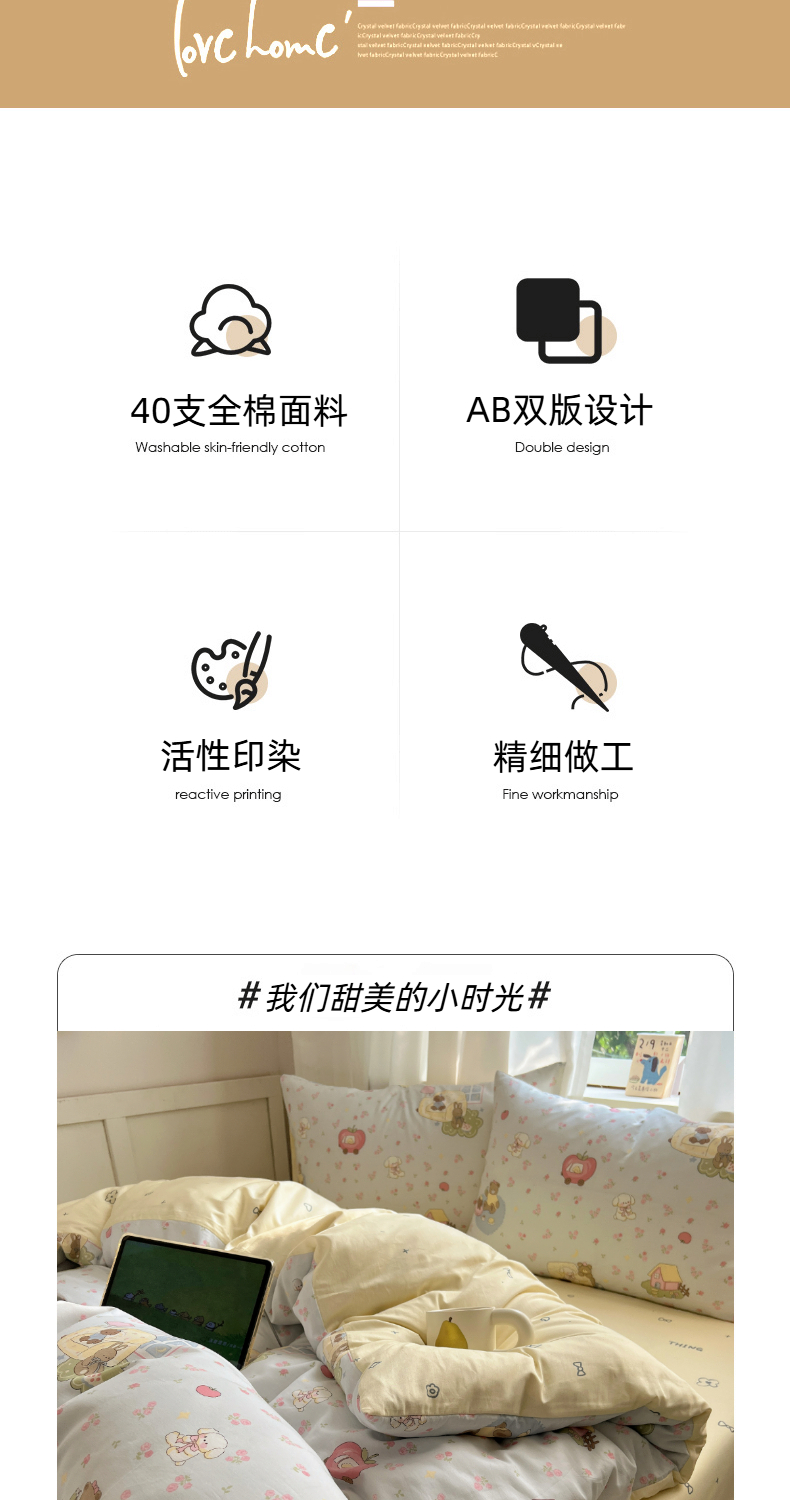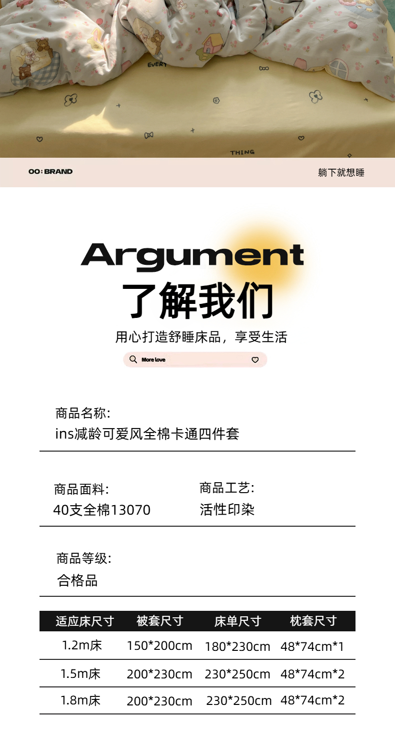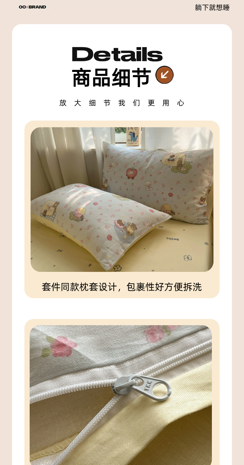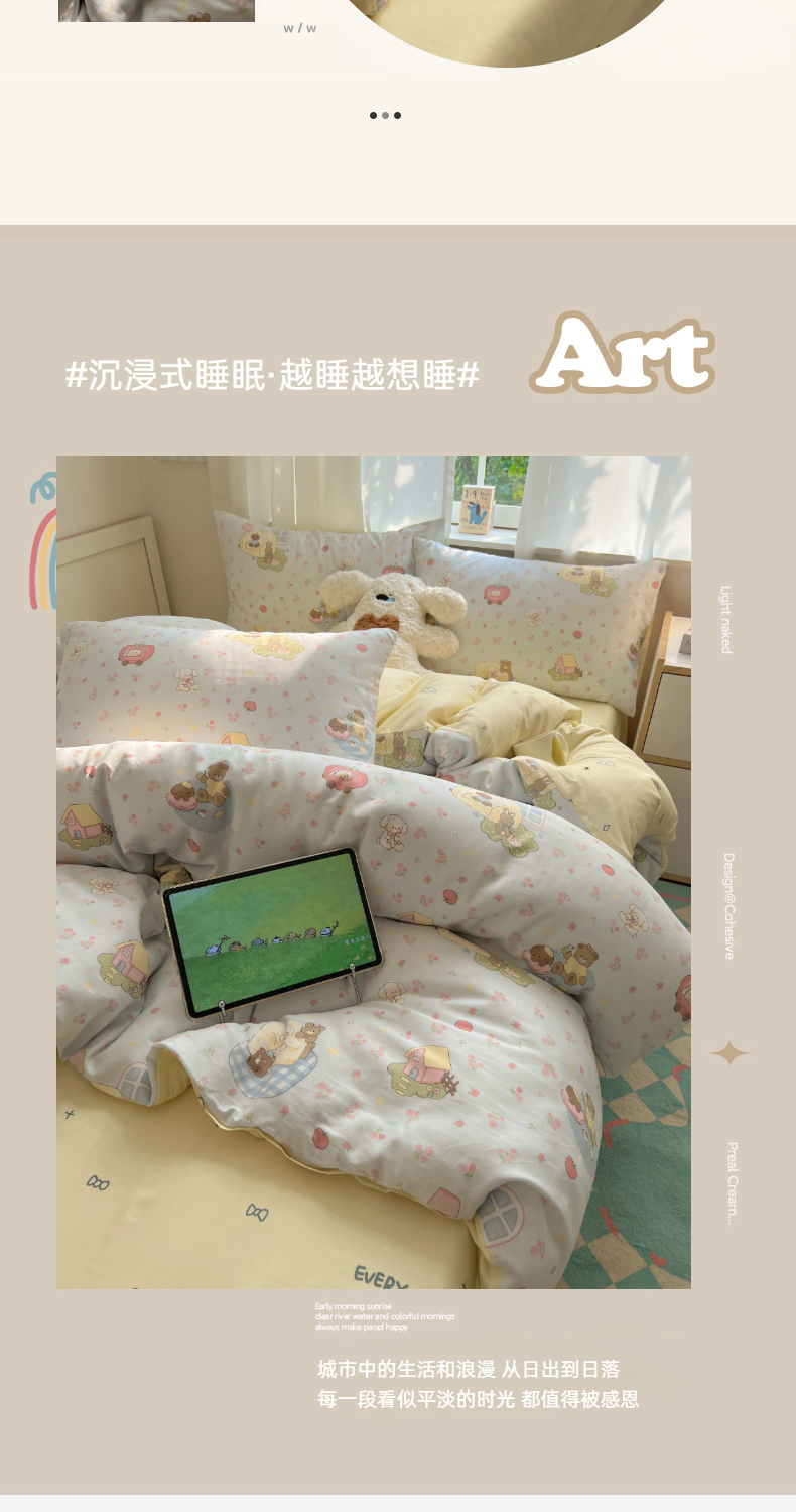 商品名称:六巷胡同 2025新款INS卡通减龄可爱风全棉四件套(开学季系列) 卧室碎花熊