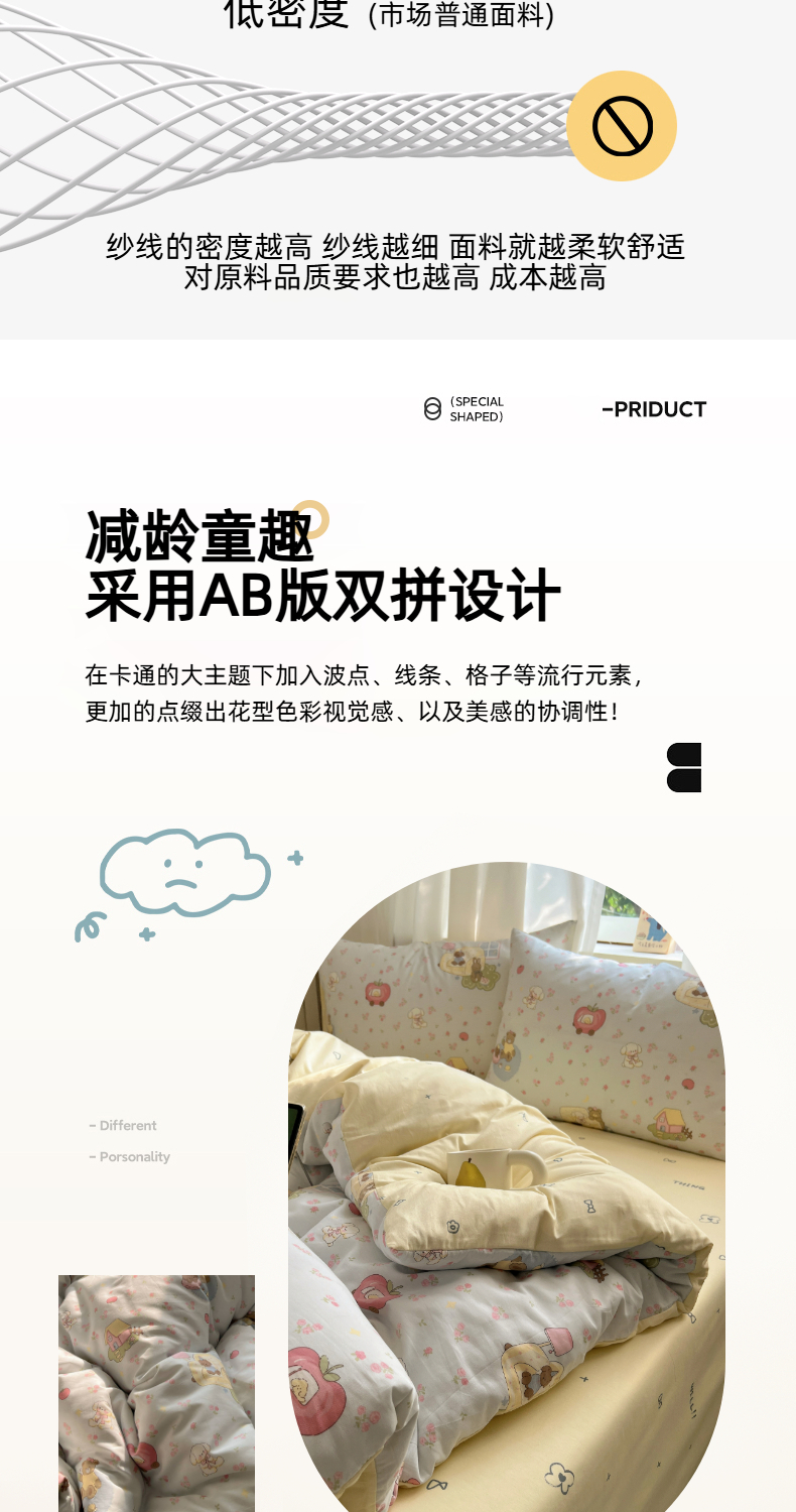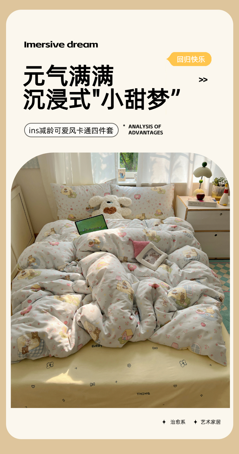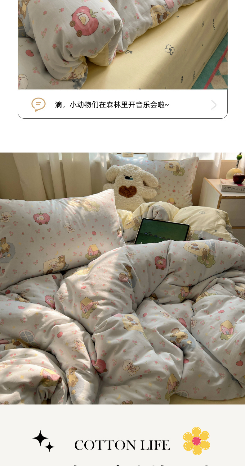 六巷胡同 2025新款INS卡通减龄可爱风全棉四件套(开学季系列) 卧室碎花熊