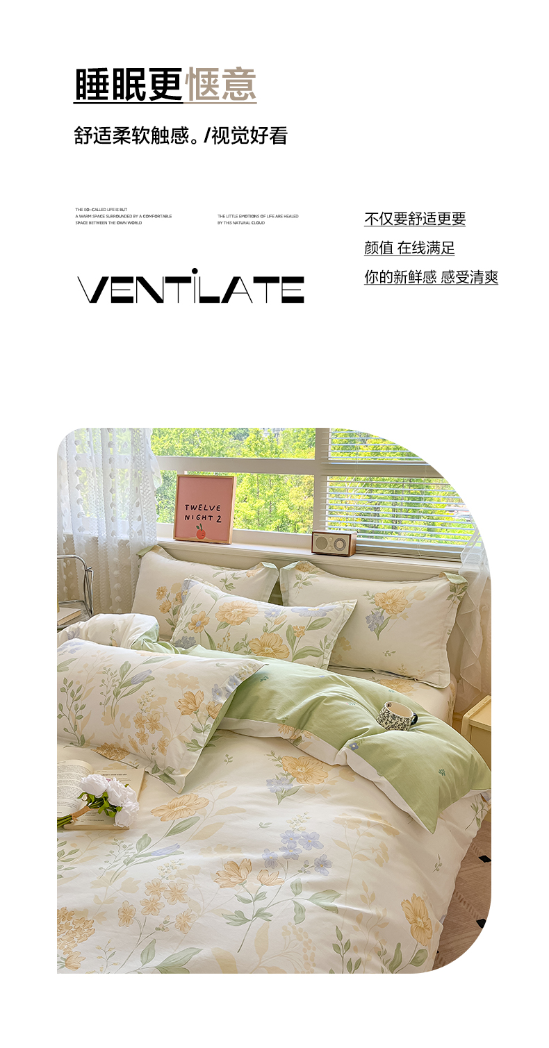 花梦欣 2025新款全棉印花单品系列-四件套花园芬芳,花园芬芳