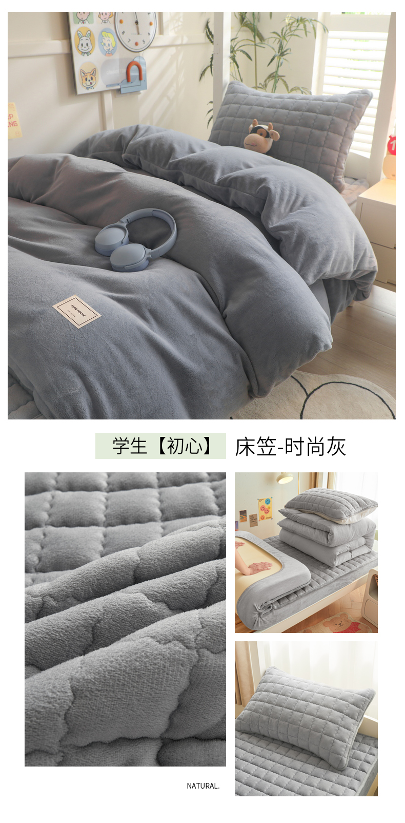 爱思凯家纺 2025新款初心-牛奶绒学生床笠小号三件套 【初心】床笠-蓝灰