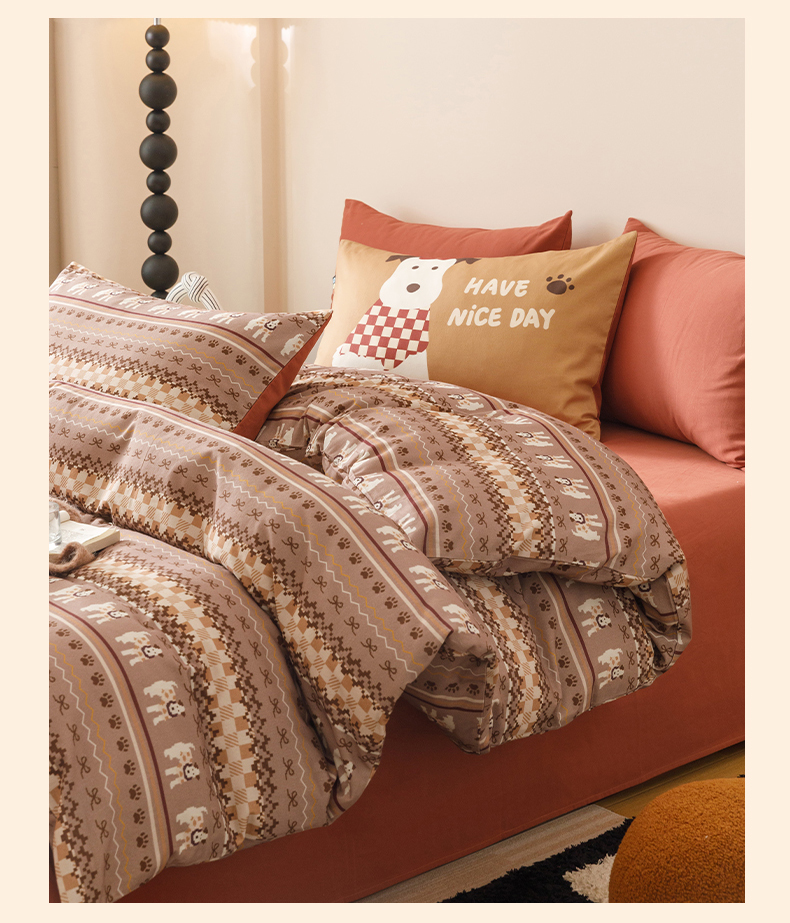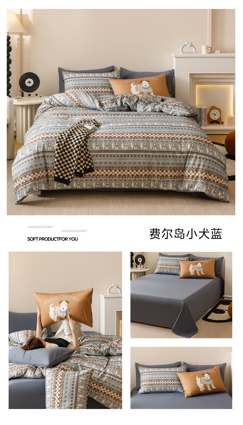 当前位置: 91家纺网 > 商品网购 > 床品套件 > 四件套 > 磨毛活性四件套 > RYB红黄兰 2025新款费尔岛系全棉纯棉加厚磨毛数码印花四件套 包装