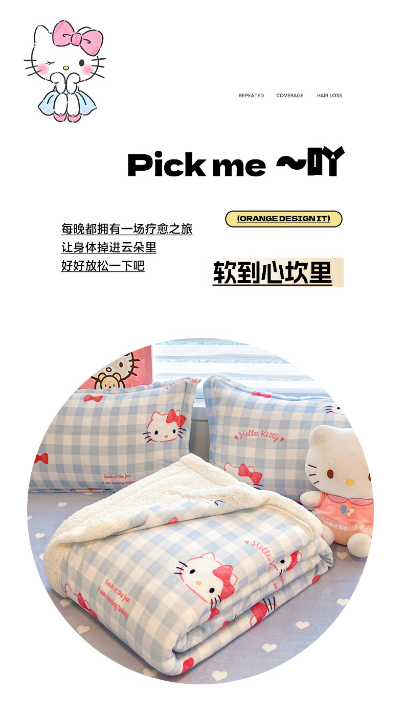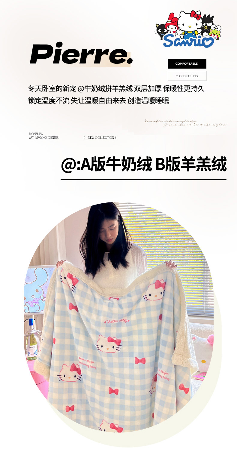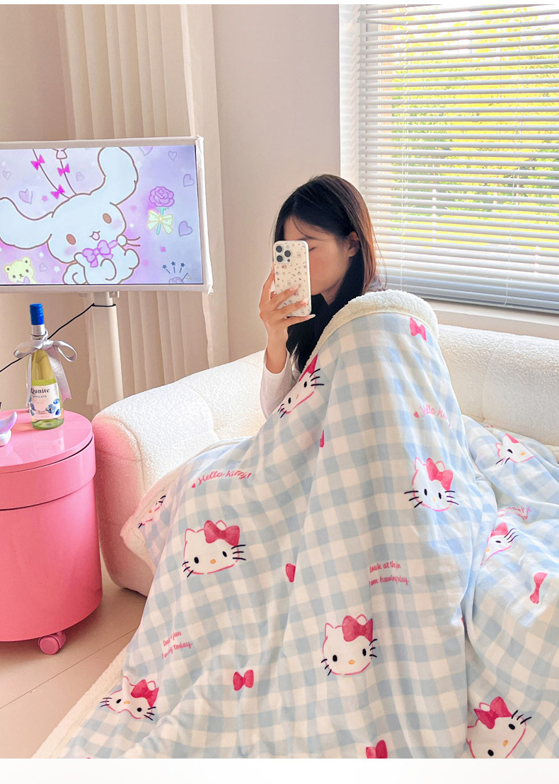 当前位置: 91家纺网 > 商品网购 > 毛毯休闲毯绒毯 > 毛毯 > 暮思家居 2025新款三丽鸥正版授权少女可爱卡通加厚牛奶绒羊羔绒毛毯多功能四季毛毯 羊羔绒-乖巧KT