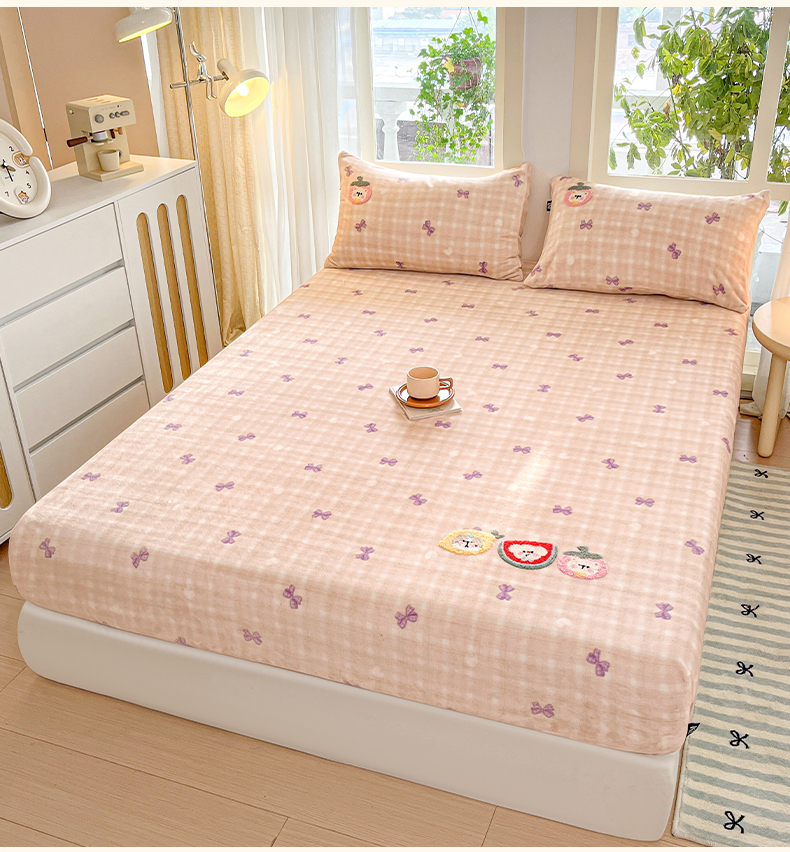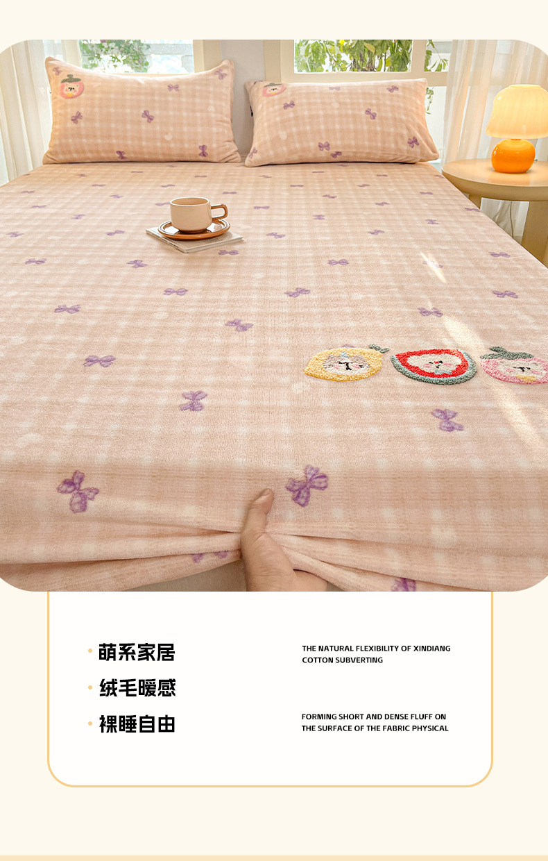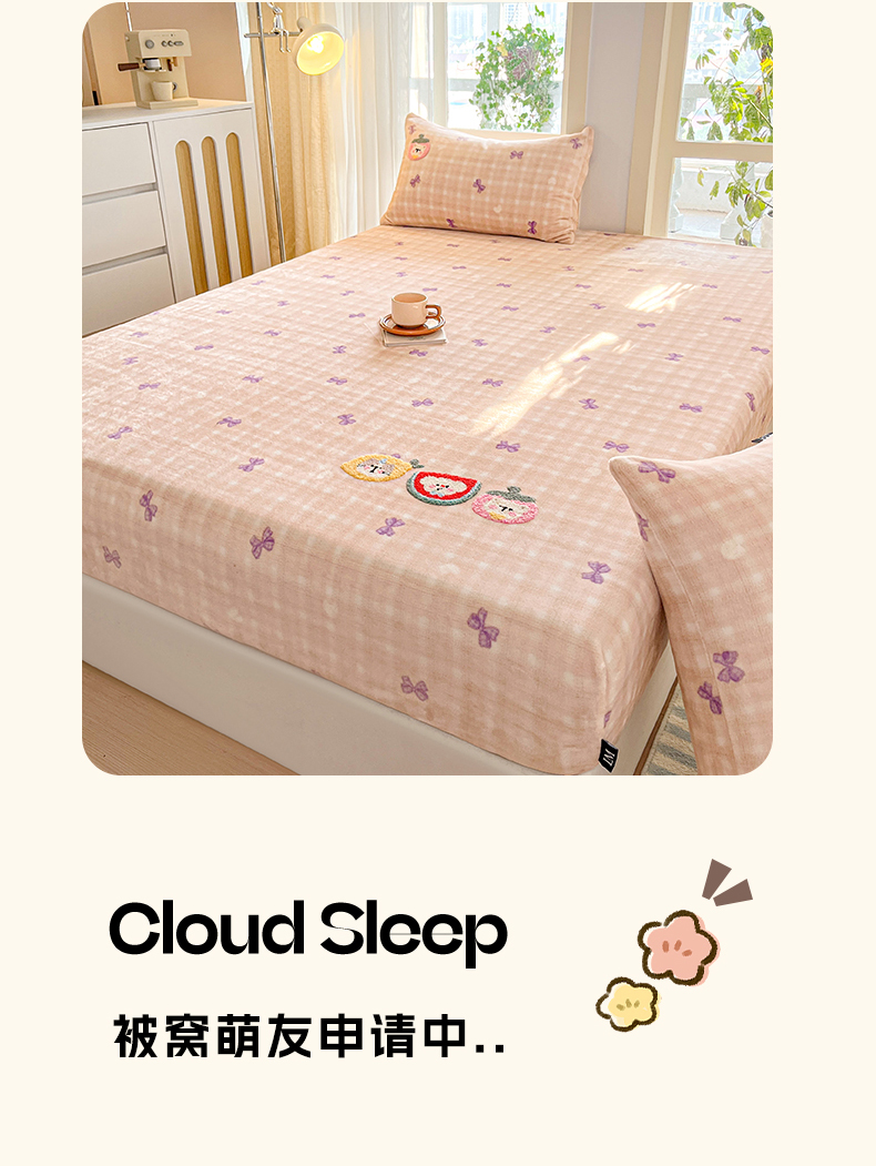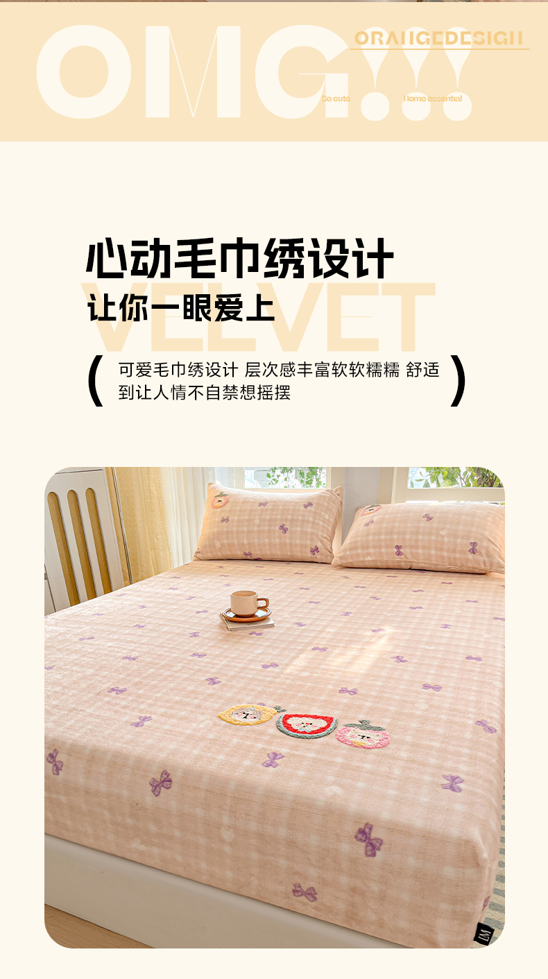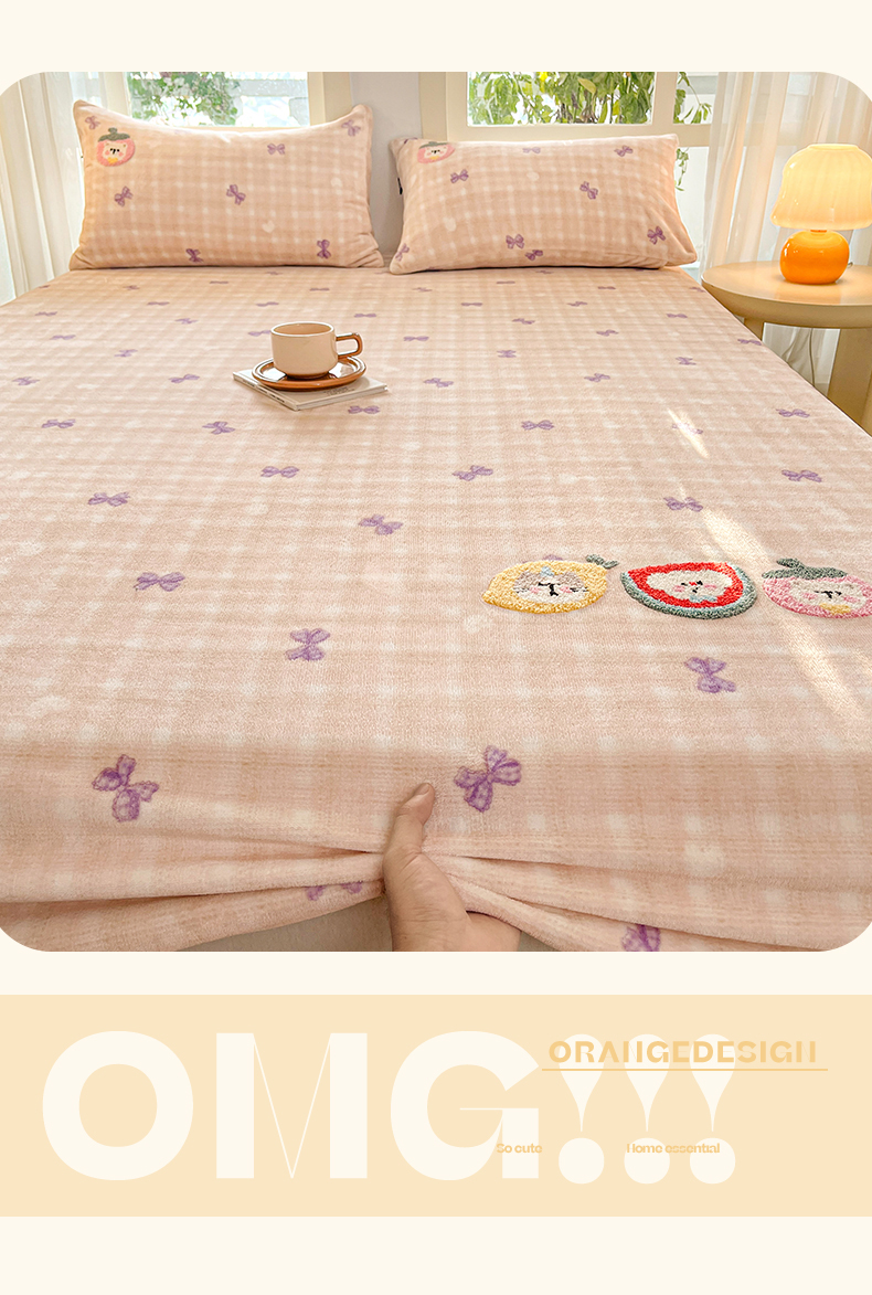 当前位置: 91家纺网 > 商品网购 > 床品套件 > 四件套 > 牛奶绒四件套 > 乐美家纺 2025新款A类高克重牛奶绒毛巾绣床笠三件套 水果时光