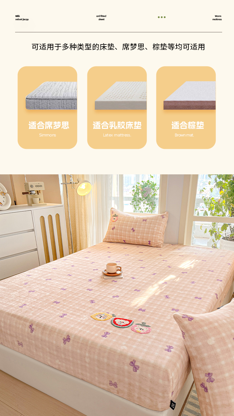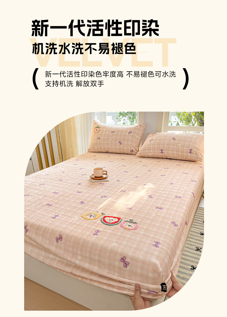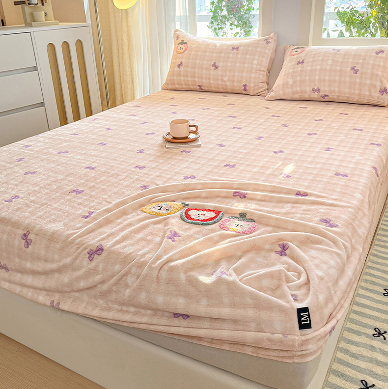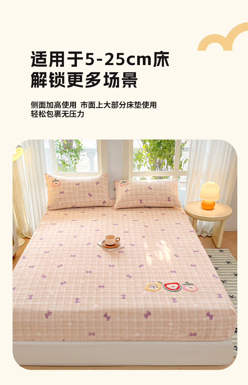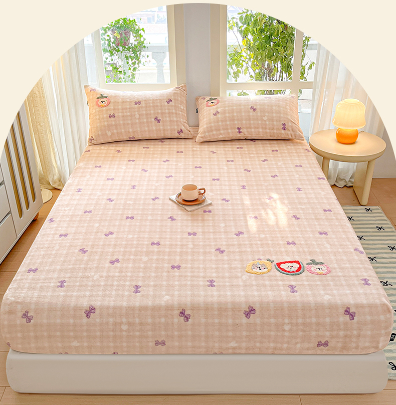 当前位置: 91家纺网 > 商品网购 > 床品套件 > 四件套 > 牛奶绒四件套 > 乐美家纺 2025新款A类高克重牛奶绒毛巾绣床笠三件套 水果时光