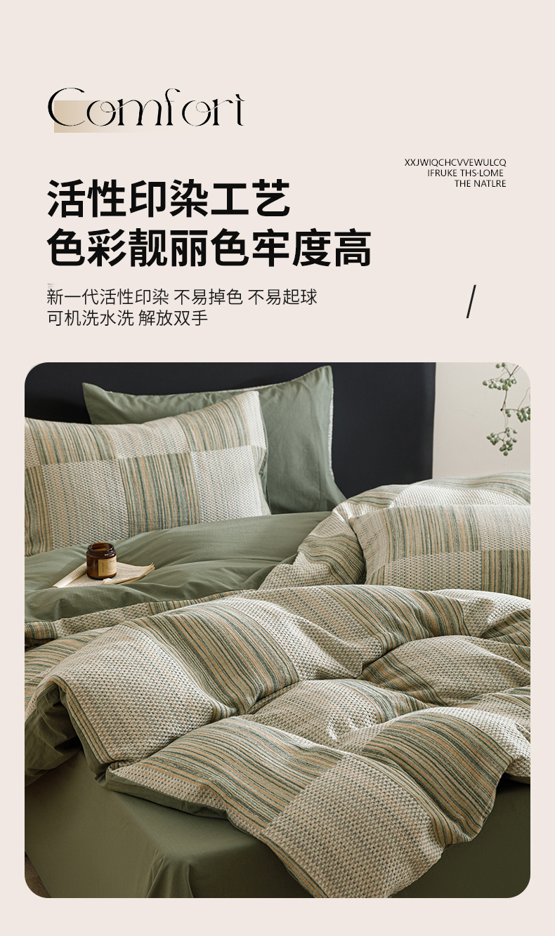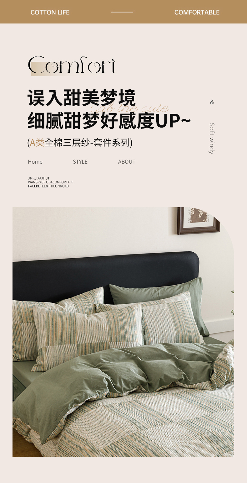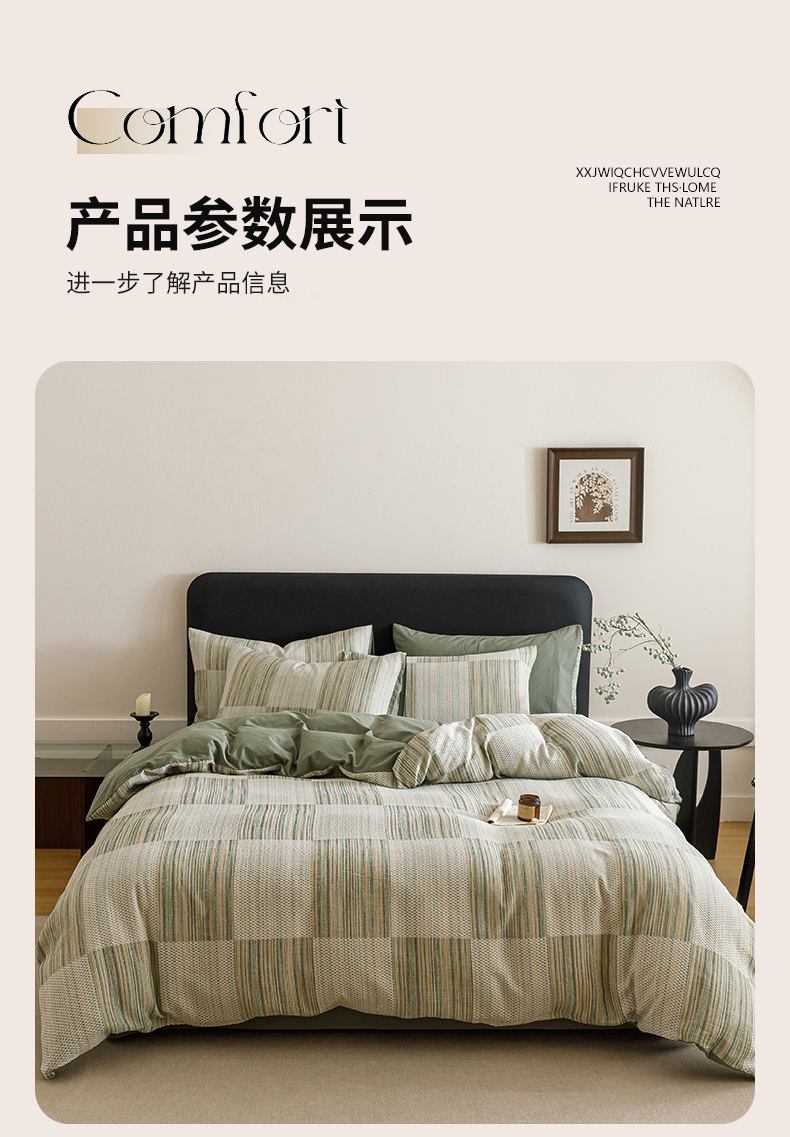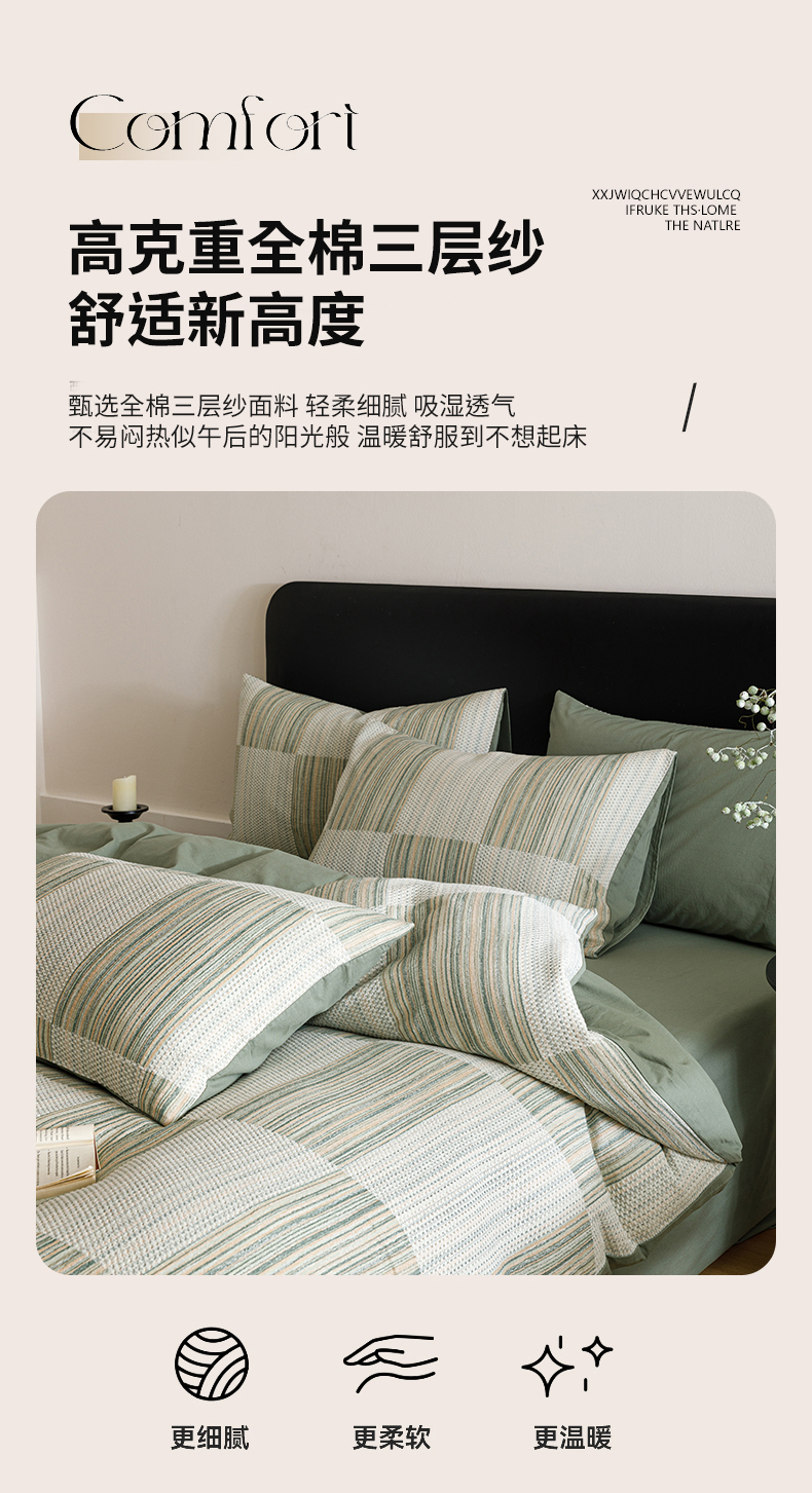 商品名称:春皖家纺 2026新款A类全棉双层纱AB版简约四件套 森屿