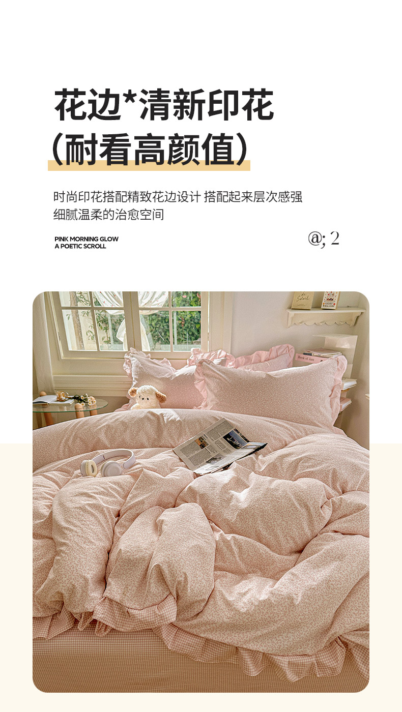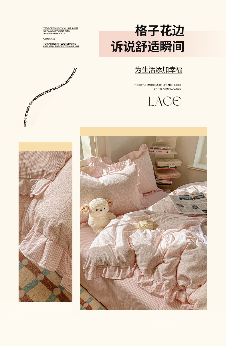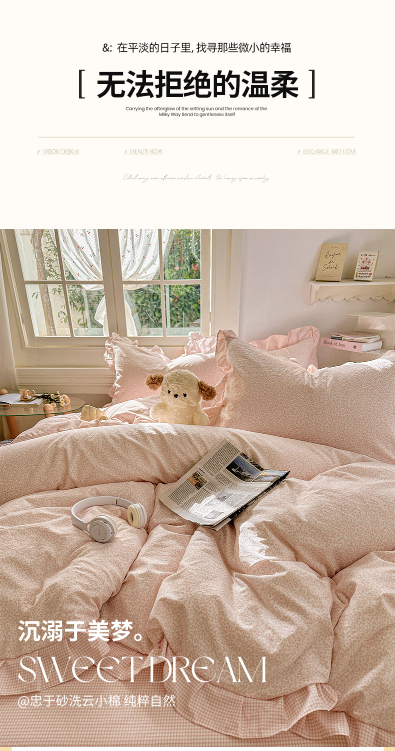当前位置: 91家纺网 > 商品网购 > 床品套件 > 四件套 > 水洗棉四件套 > 金梦拉家纺 2026春夏韩版花边款小碎花古法水洗仿棉A类砂洗云小棉四件套 海盐奶咖