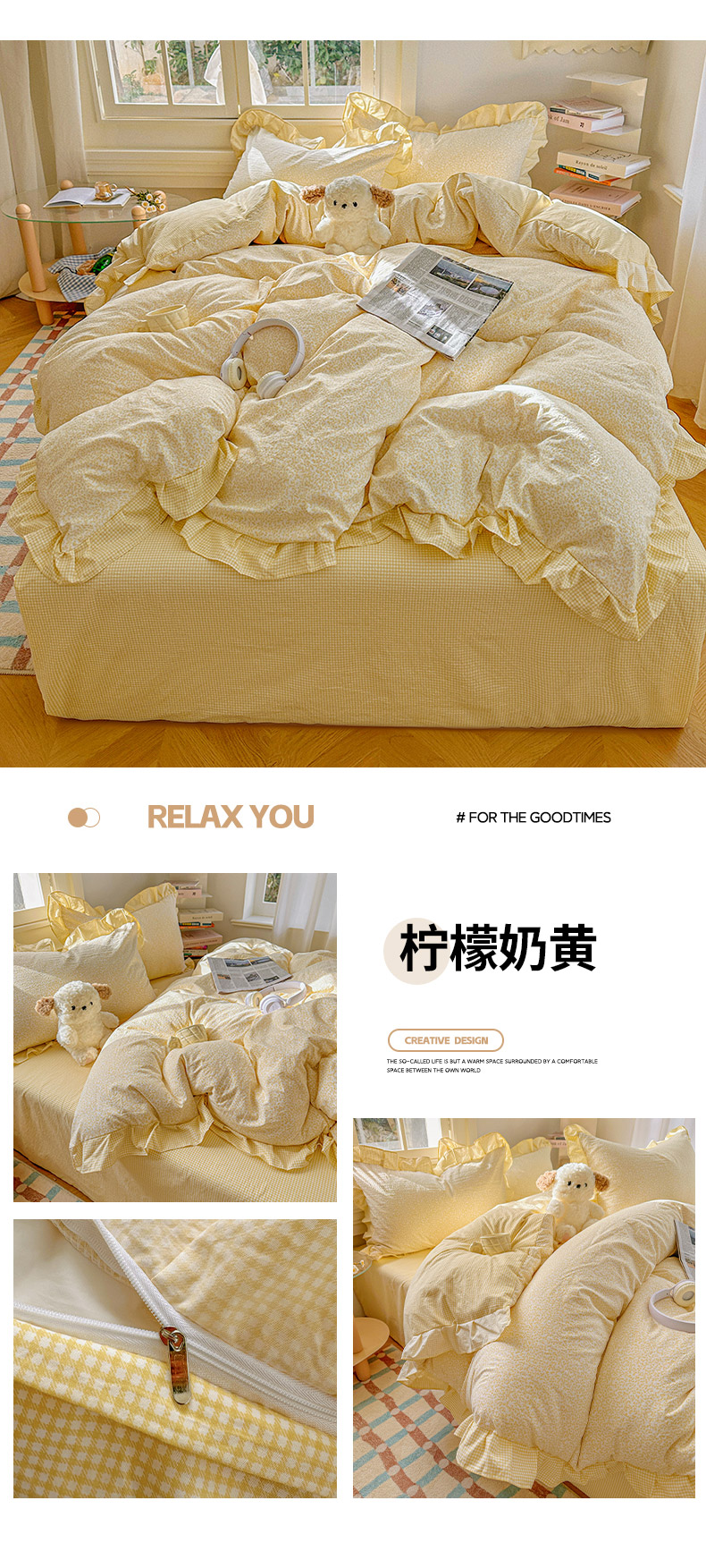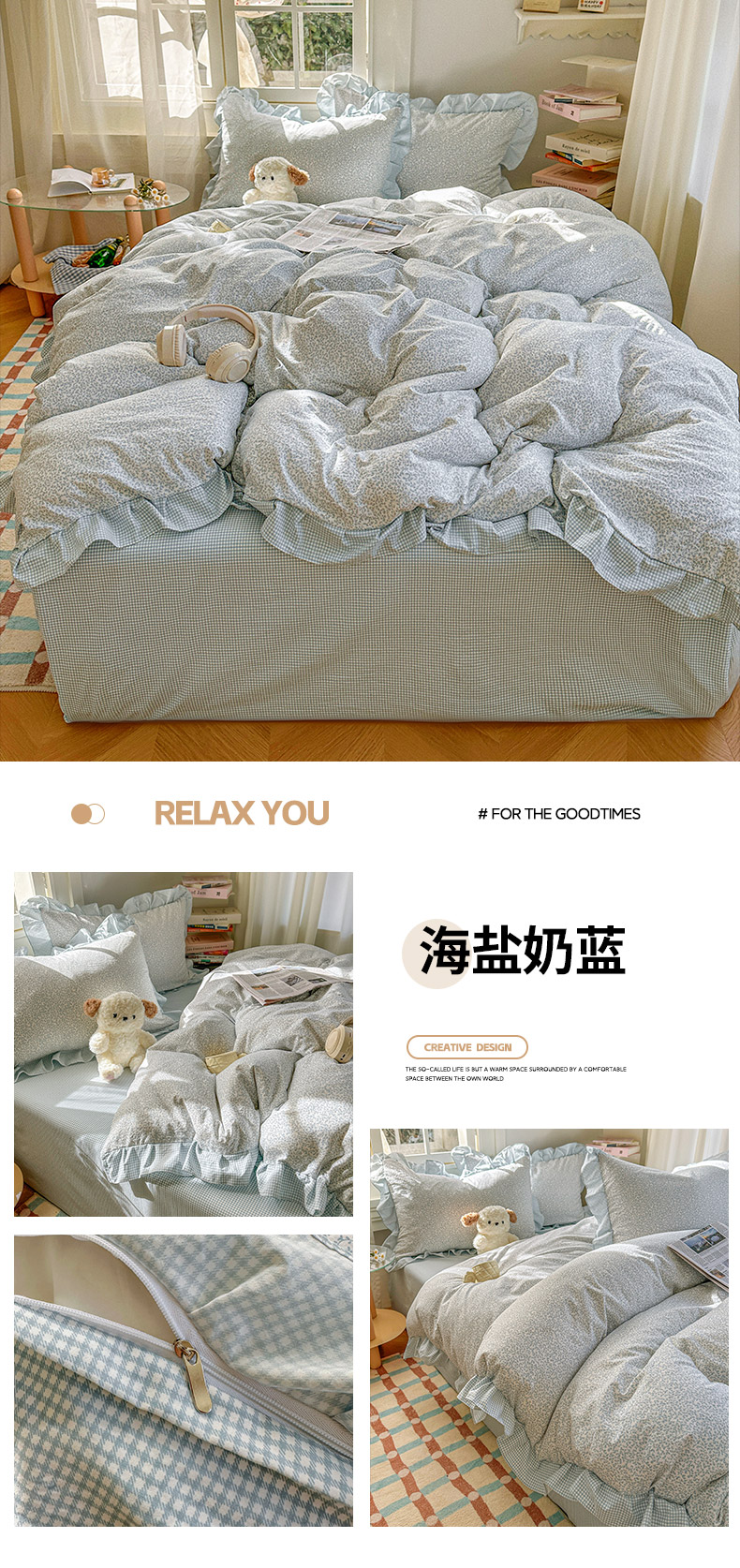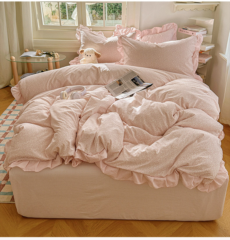 当前位置: 91家纺网 > 商品网购 > 床品套件 > 四件套 > 水洗棉四件套 > 金梦拉家纺 2026春夏韩版花边款小碎花古法水洗仿棉A类砂洗云小棉四件套 海盐奶咖