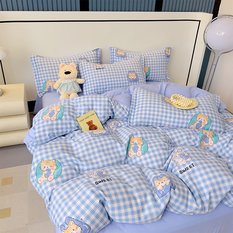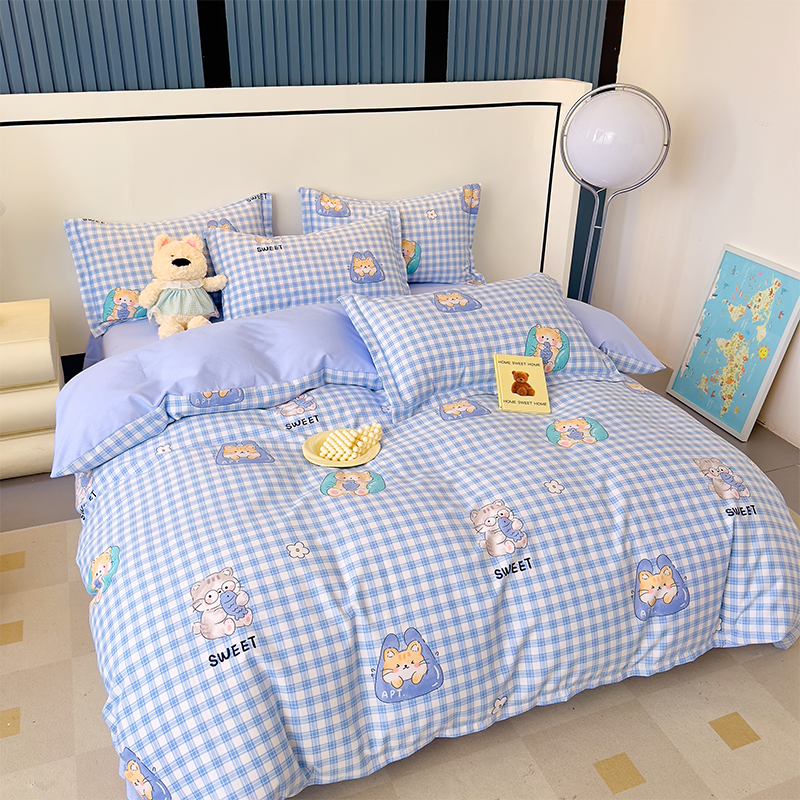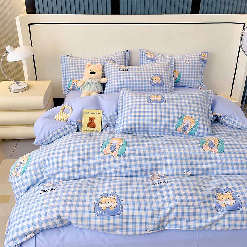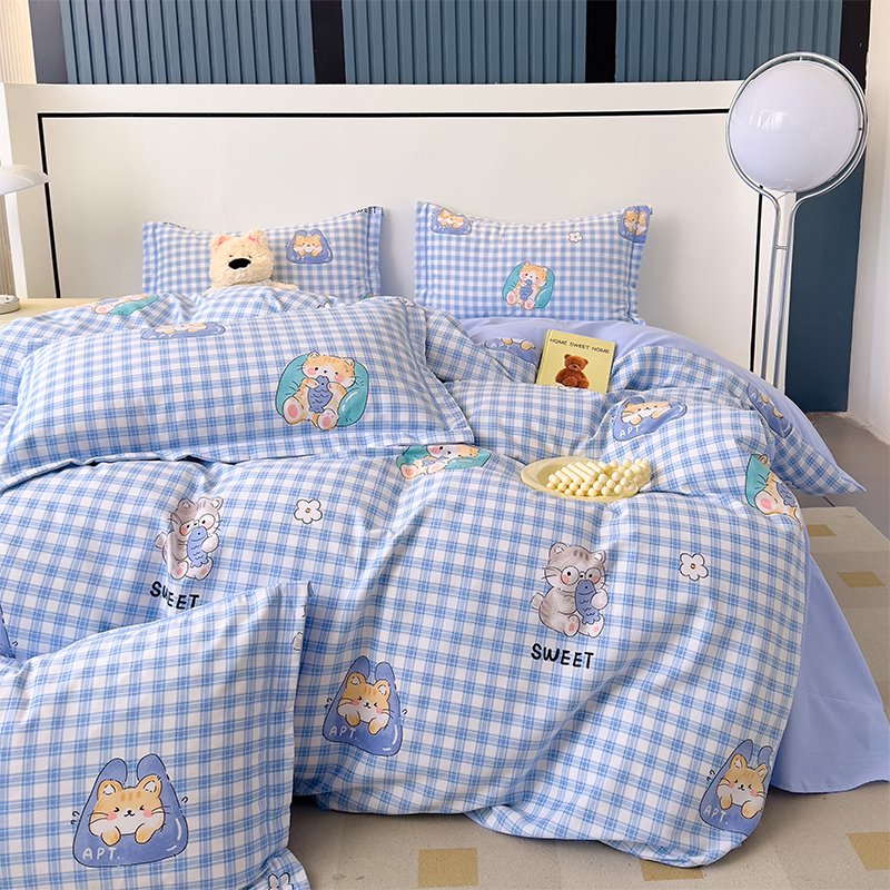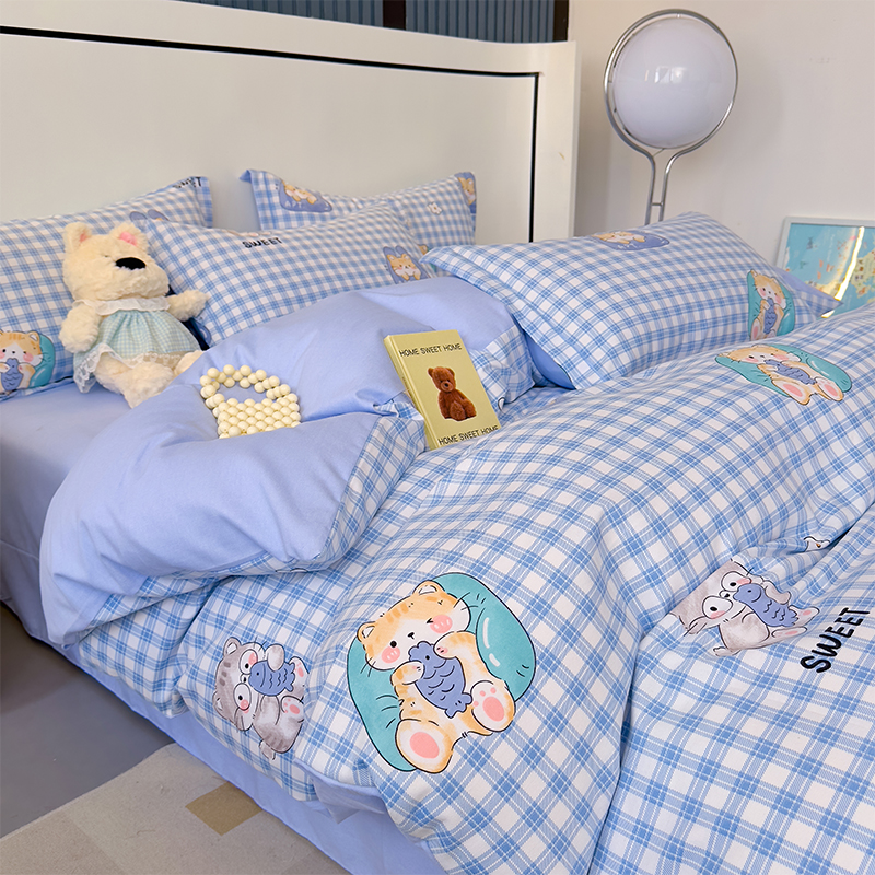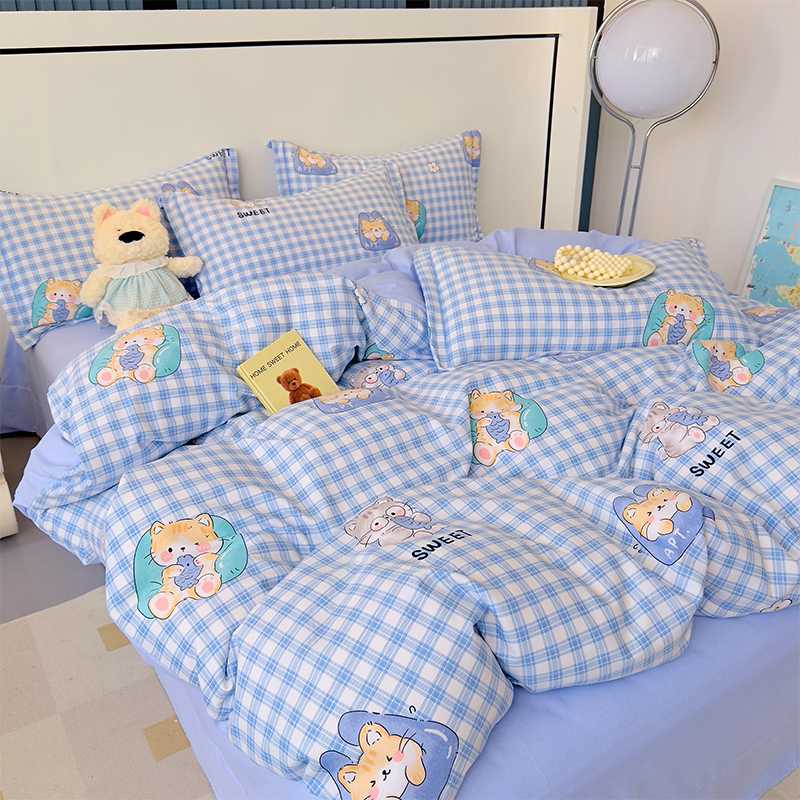 商品名称:优品阁 2024新款全棉磨毛四件套单品系列-单被套 喵喵-蓝