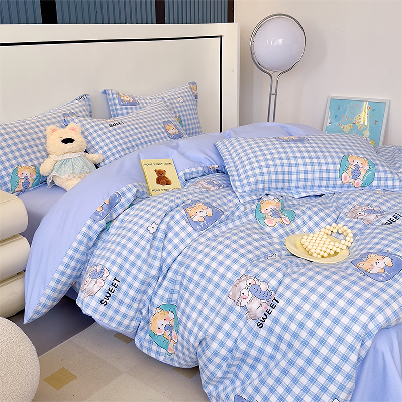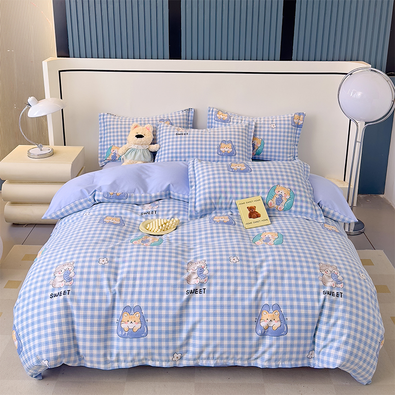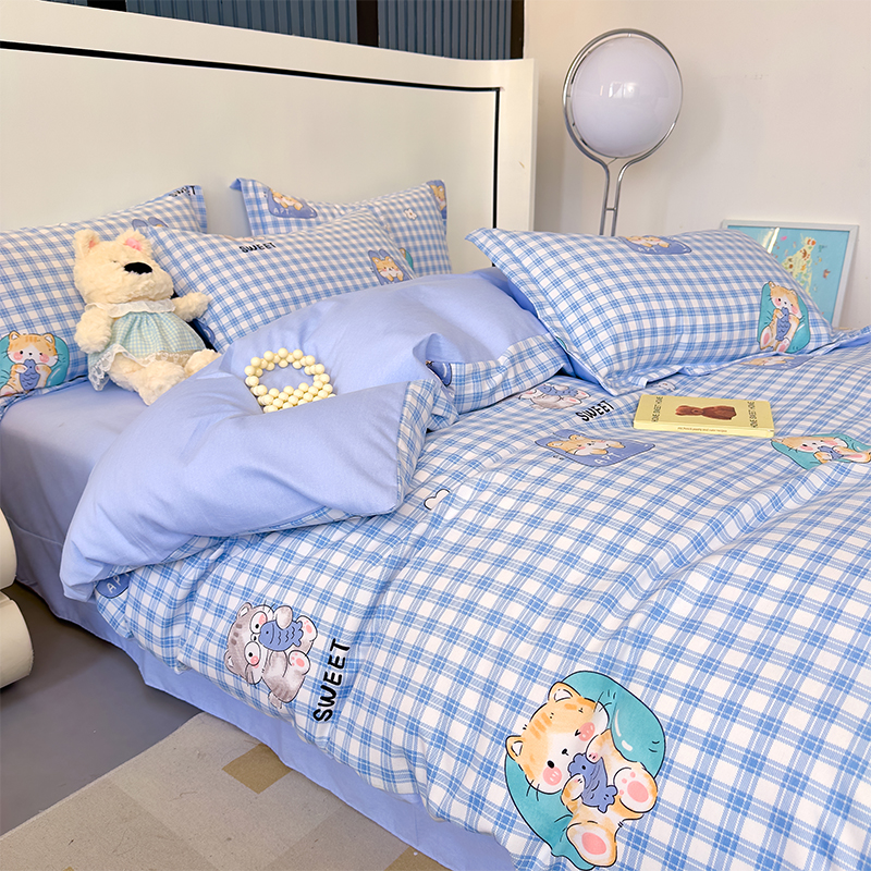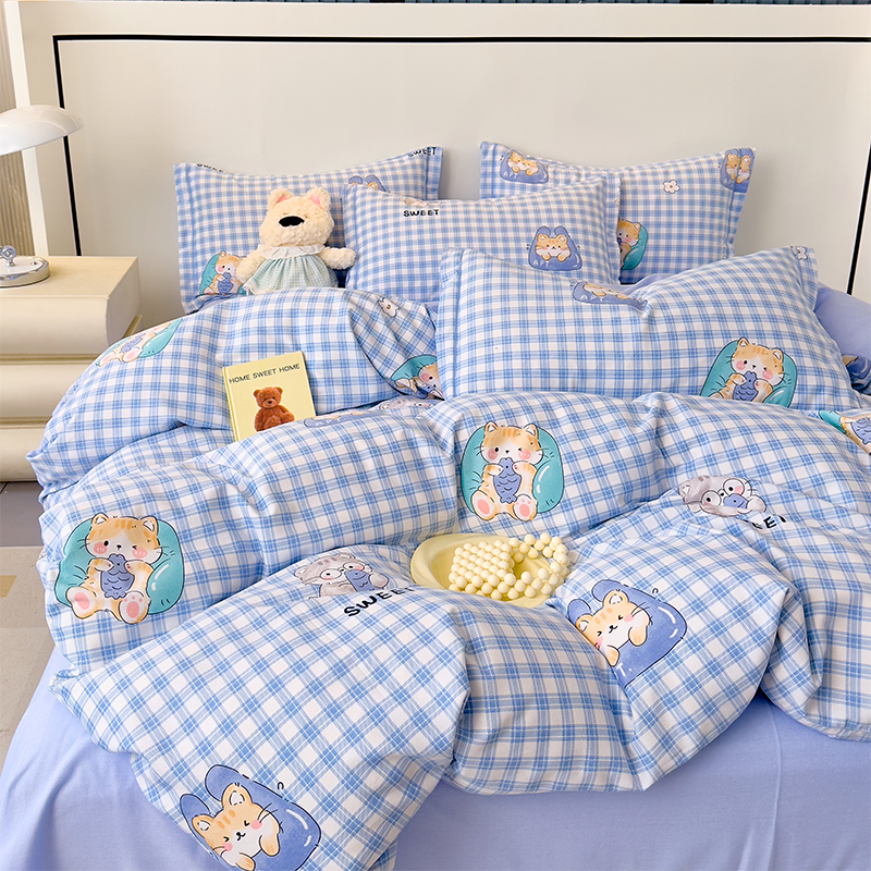 优品阁 2024新款全棉磨毛四件套单品系列-单被套 喵喵-蓝
