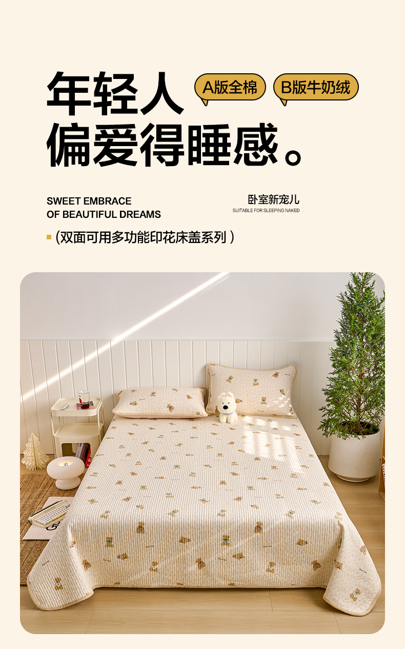 当前位置: 91家纺网 > 商品网购 > 床上用品 > 床盖 > X猫先生 2026新品A全棉B牛奶绒床盖一面全棉一面牛奶绒床盖炕盖加厚床单床垫四季款系列三 趴趴熊(A棉B绒)
