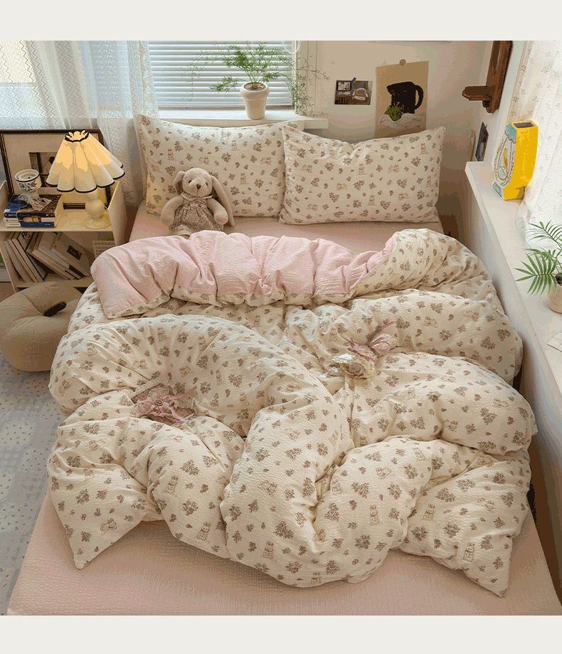 当前位置: 91家纺网 > 商品网购 > 床品套件 > 四件套 > 化纤普通四件套 > 奈颜 2026新款A类泡芙纱小碎花四件套学生宿舍三件套 春日甜甜