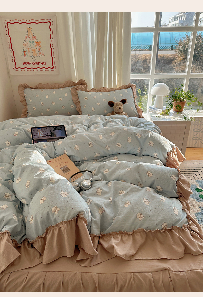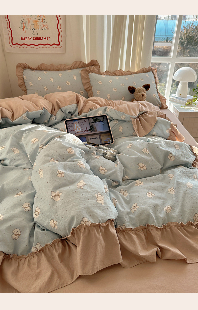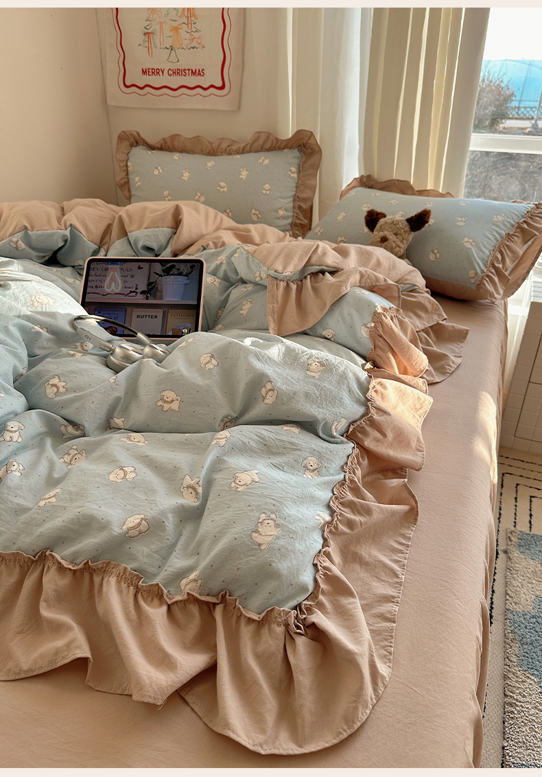 当前位置: 91家纺网 > 商品网购 > 床品套件 > 四件套 > 其它四件套 > 韩都家居 2026新款韩系大花边系列古棉四件套 星狗