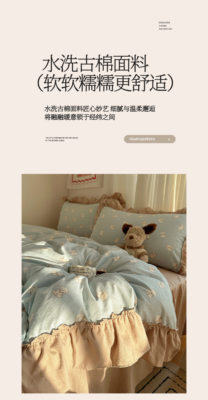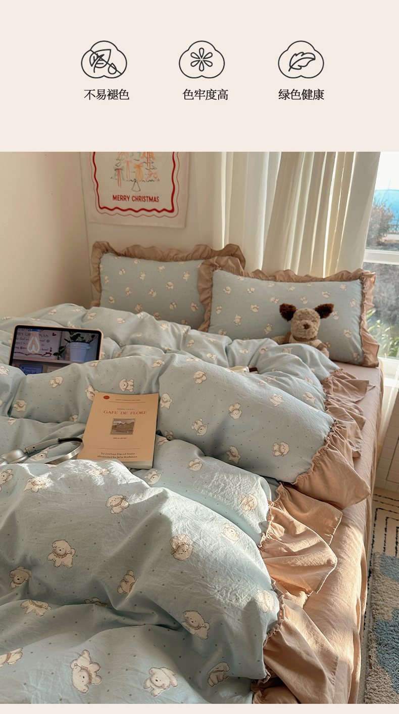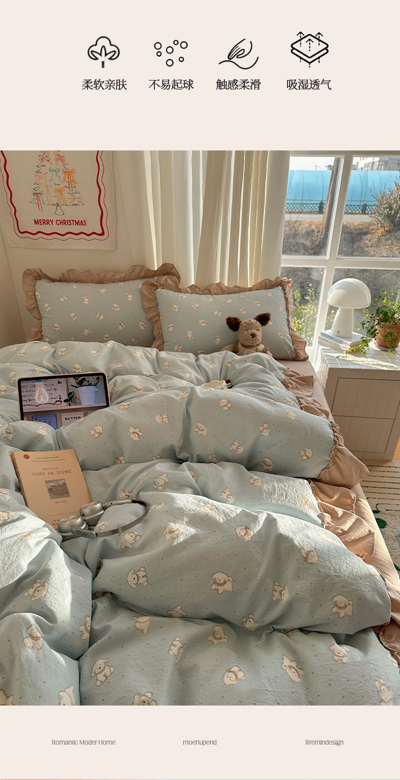当前位置: 91家纺网 > 商品网购 > 床品套件 > 四件套 > 其它四件套 > 韩都家居 2026新款韩系大花边系列古棉四件套 星狗