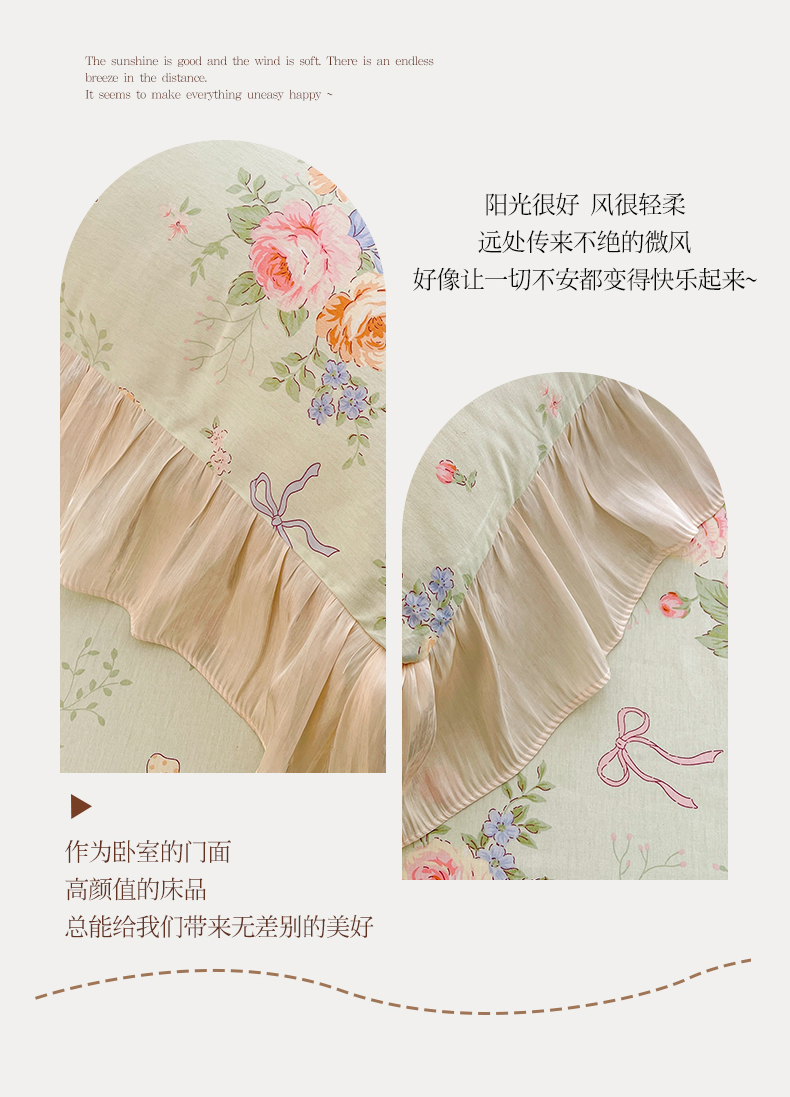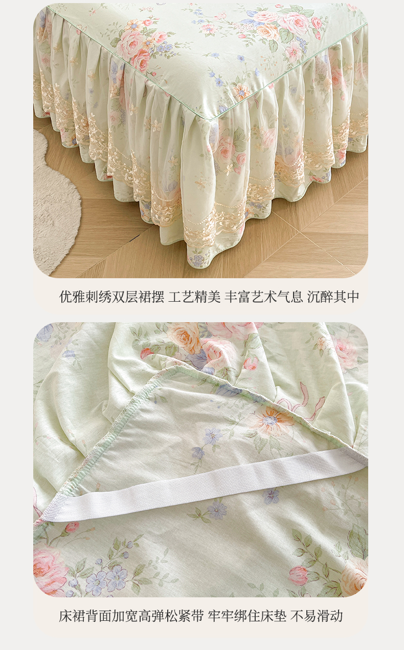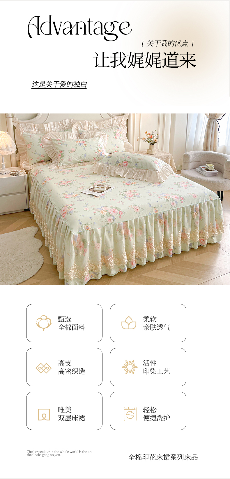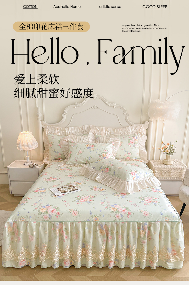 当前位置: 91家纺网 > 商品网购 > 床品套件 > 三件套 > 宜凡家纺 2026新款全棉印花床裙款三件套 曼妙花香