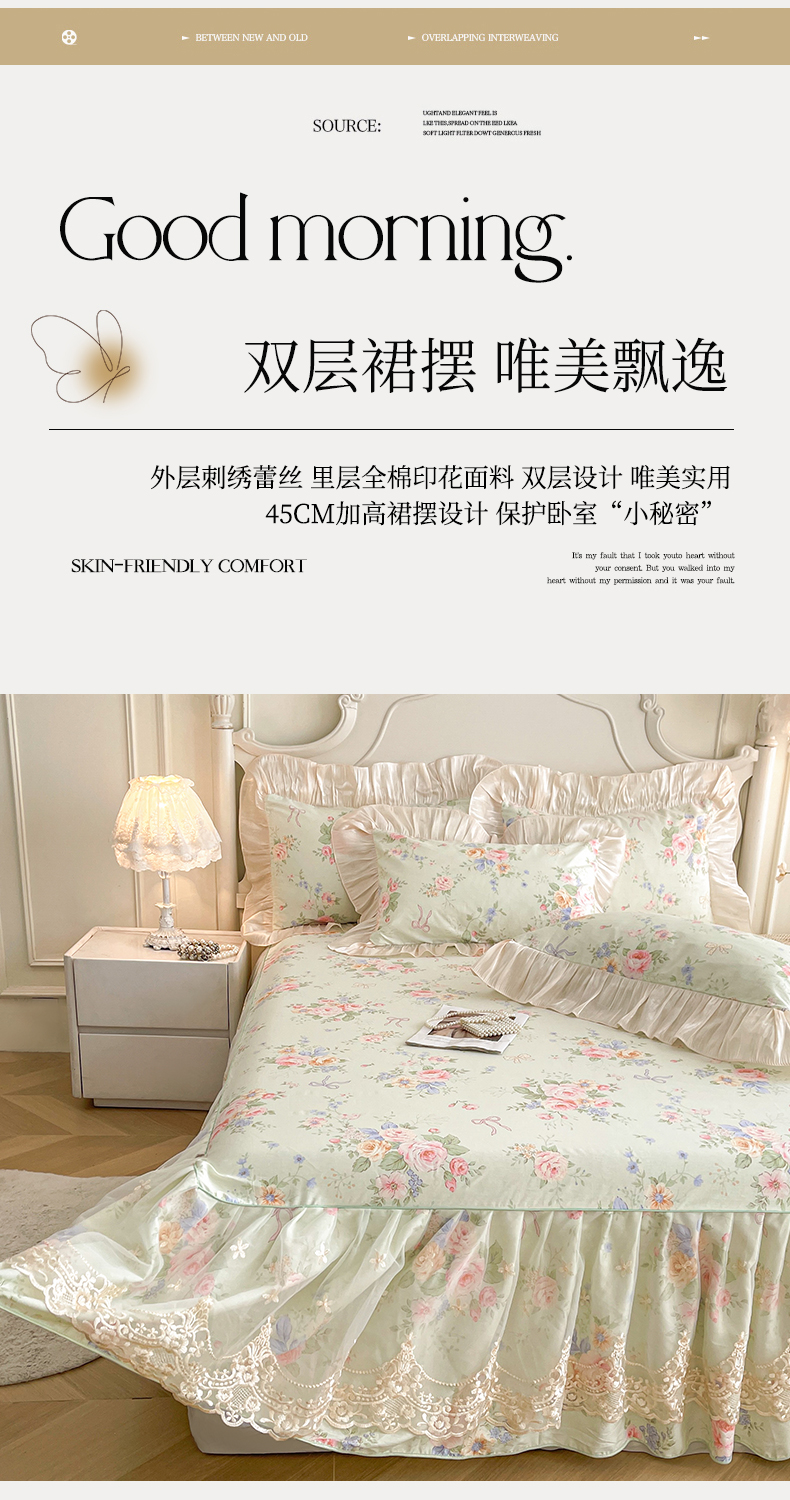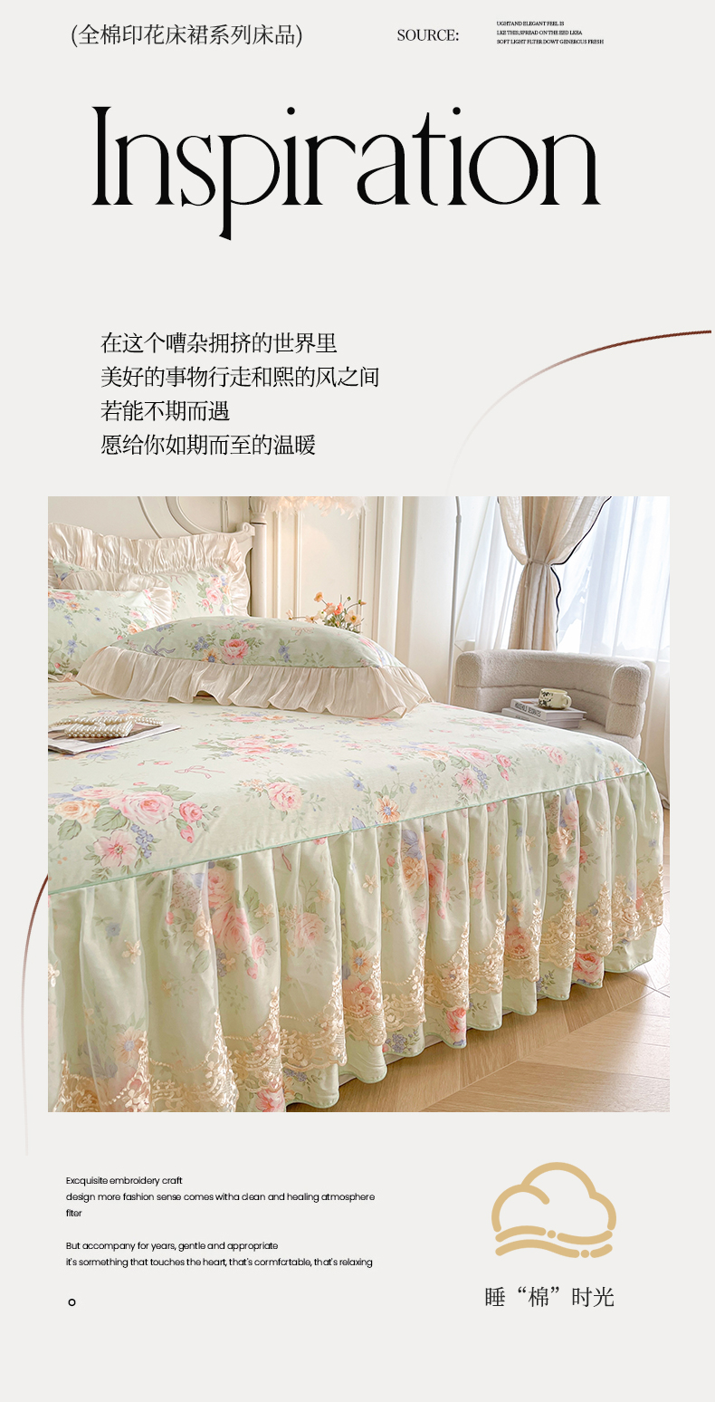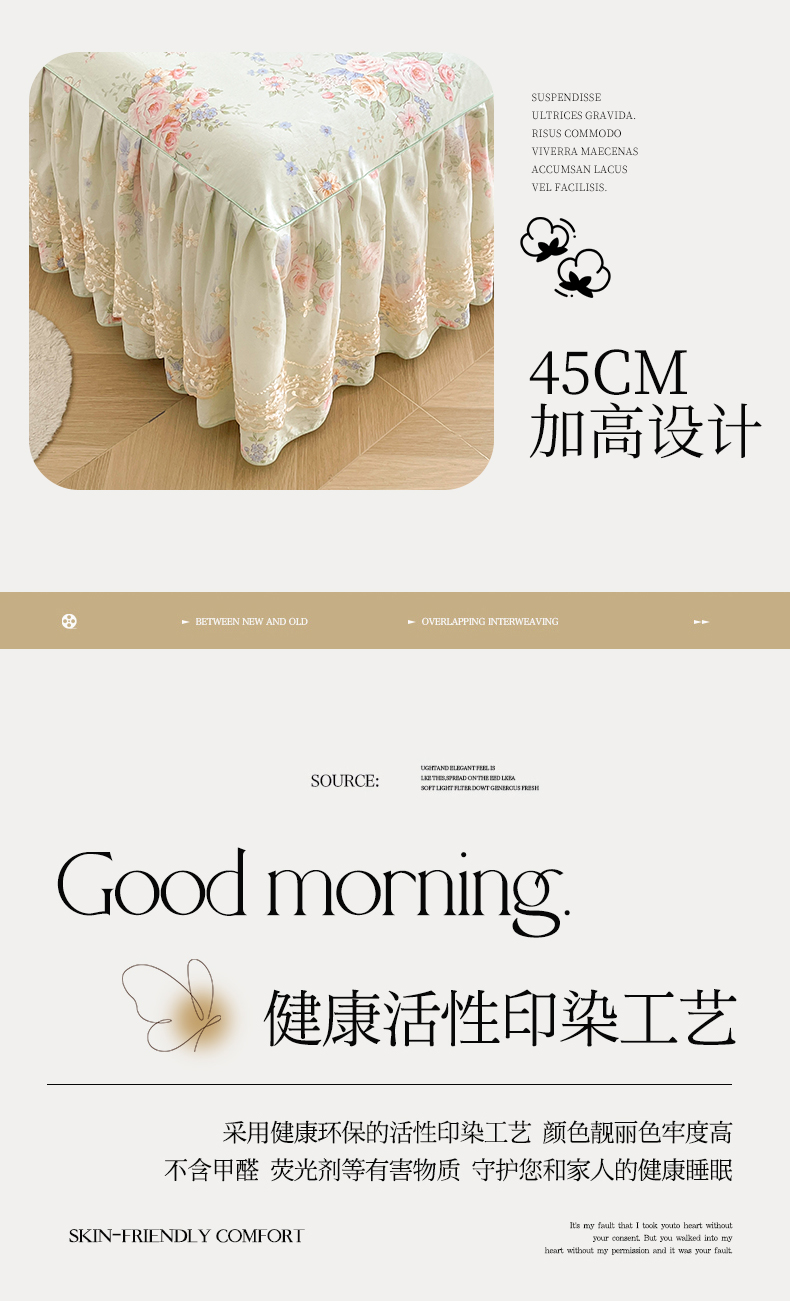 当前位置: 91家纺网 > 商品网购 > 床品套件 > 三件套 > 宜凡家纺 2026新款全棉印花床裙款三件套 曼妙花香