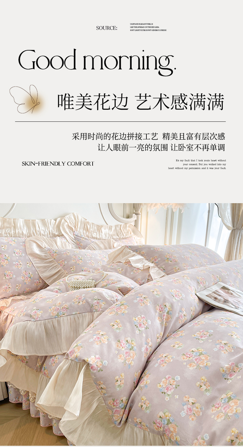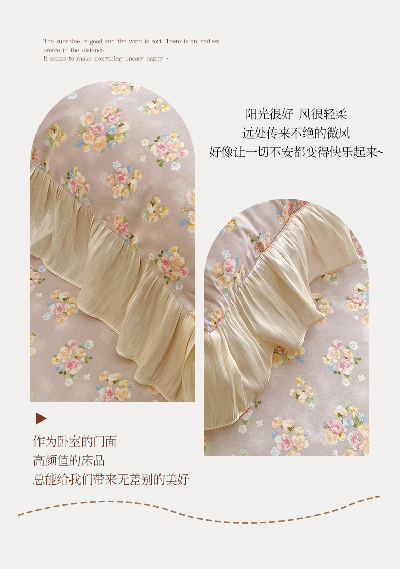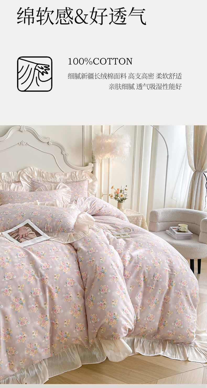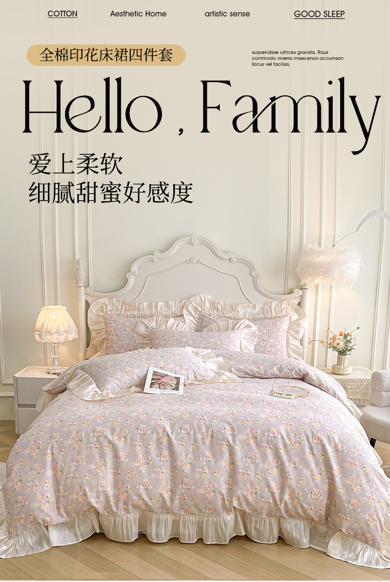 当前位置: 91家纺网 > 商品网购 > 床品套件 > 四件套 > 全棉普通四件套 > 宜凡家纺 2026新款全棉印花床裙款四件套 晴空