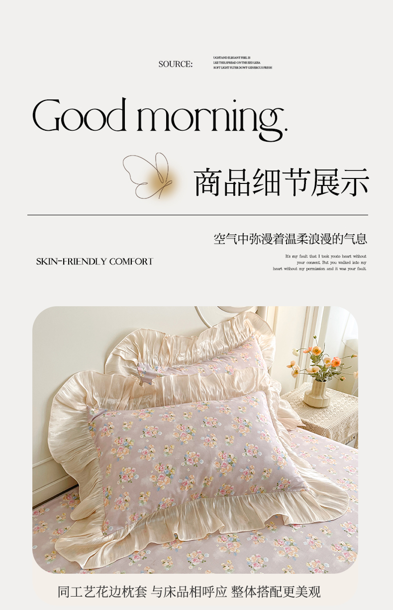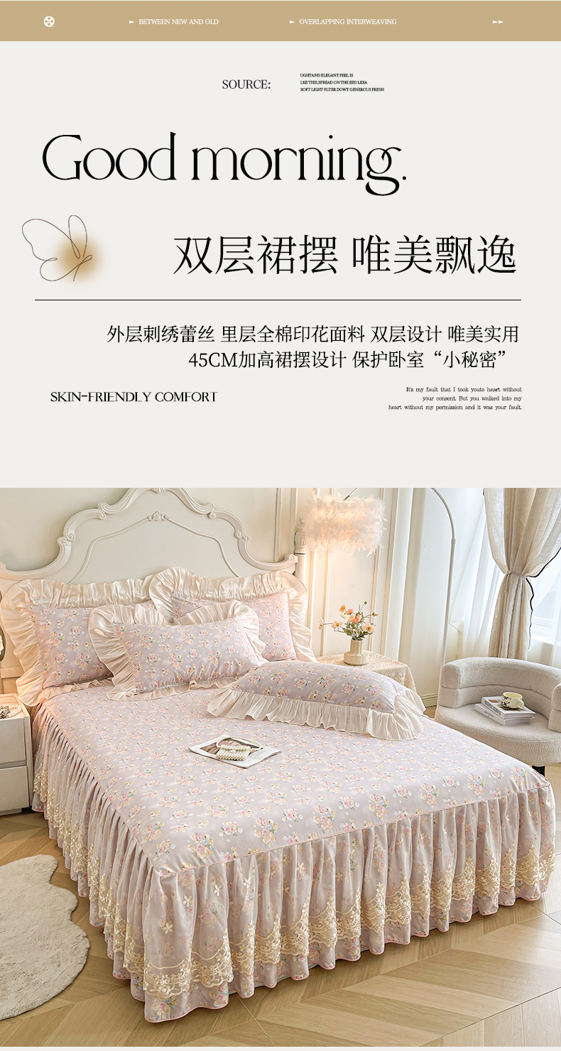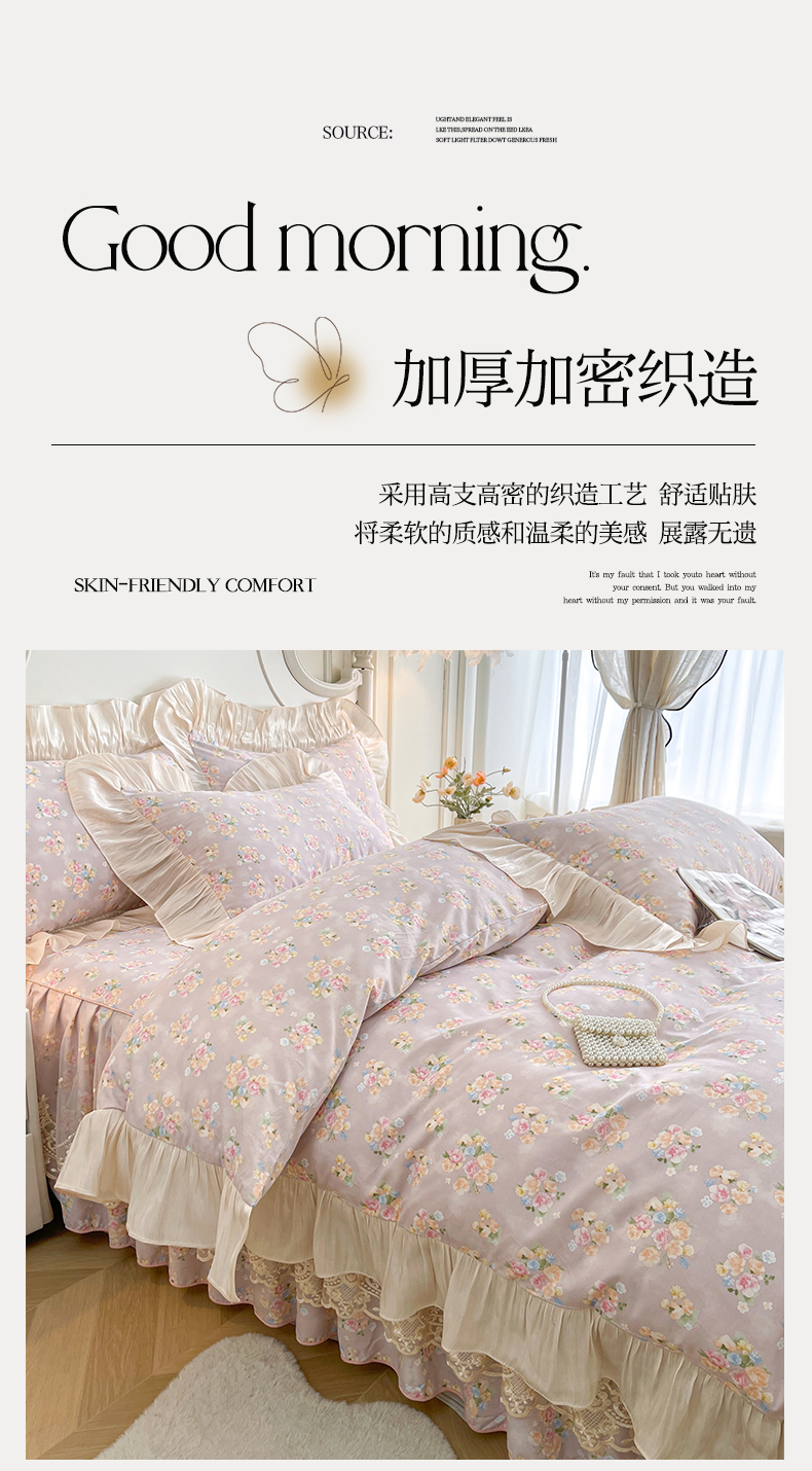 当前位置: 91家纺网 > 商品网购 > 床品套件 > 四件套 > 全棉普通四件套 > 宜凡家纺 2026新款全棉印花床裙款四件套 晴空