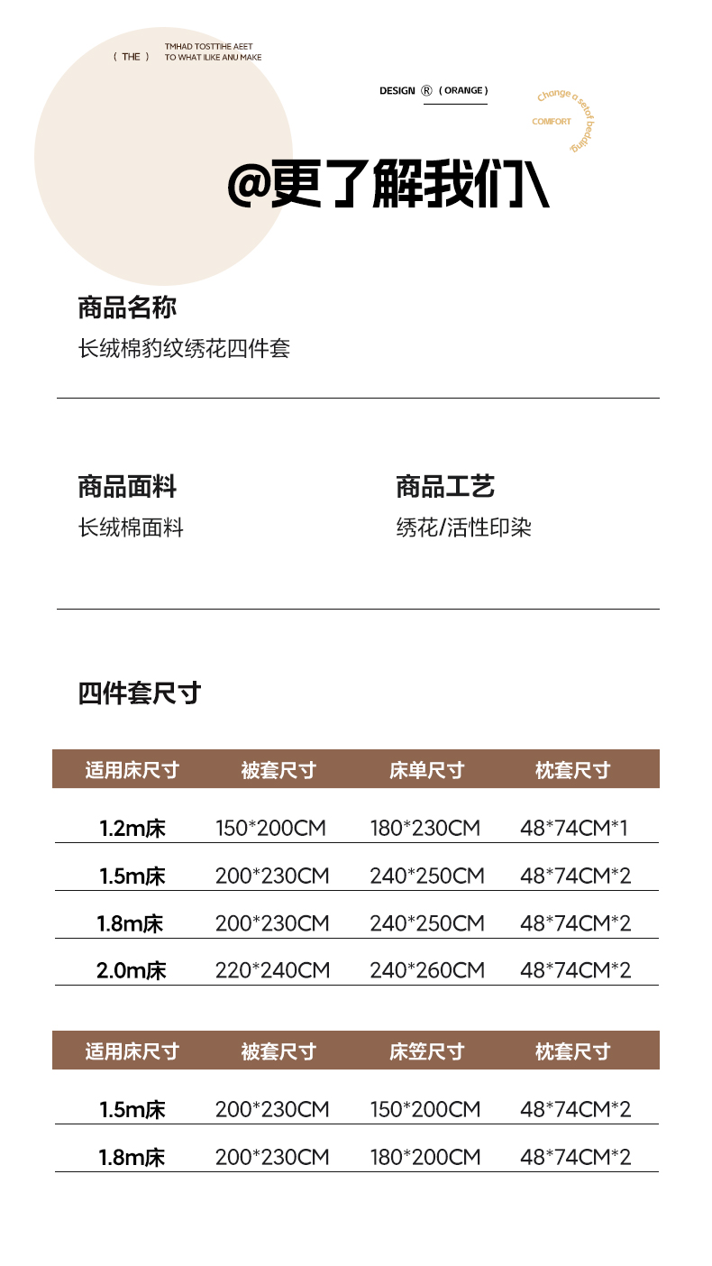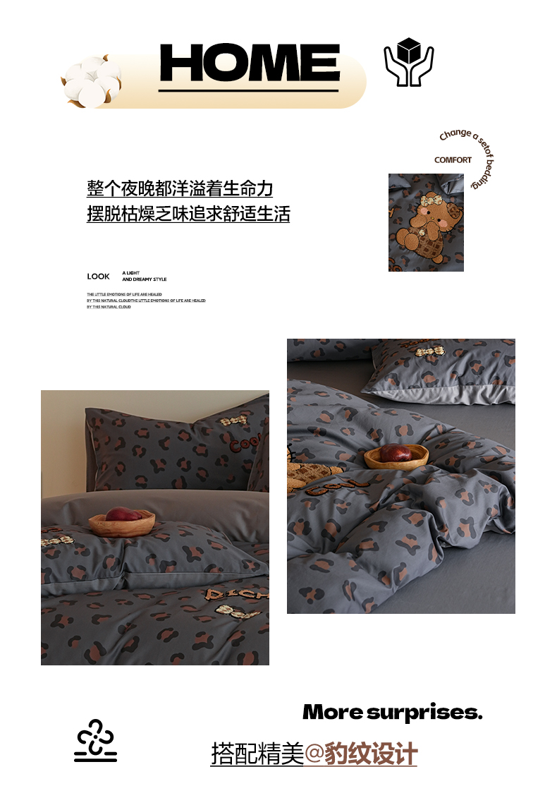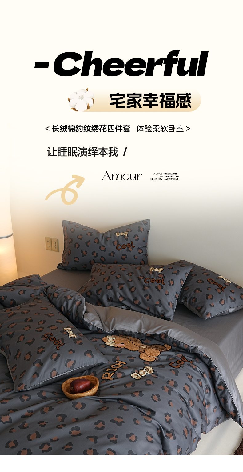 商品名称:(总)雅居纺家纺 2026新款50长绒棉豹纹绣花四件套