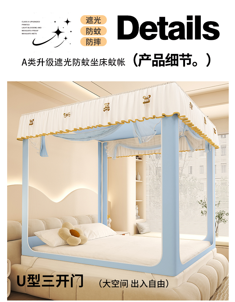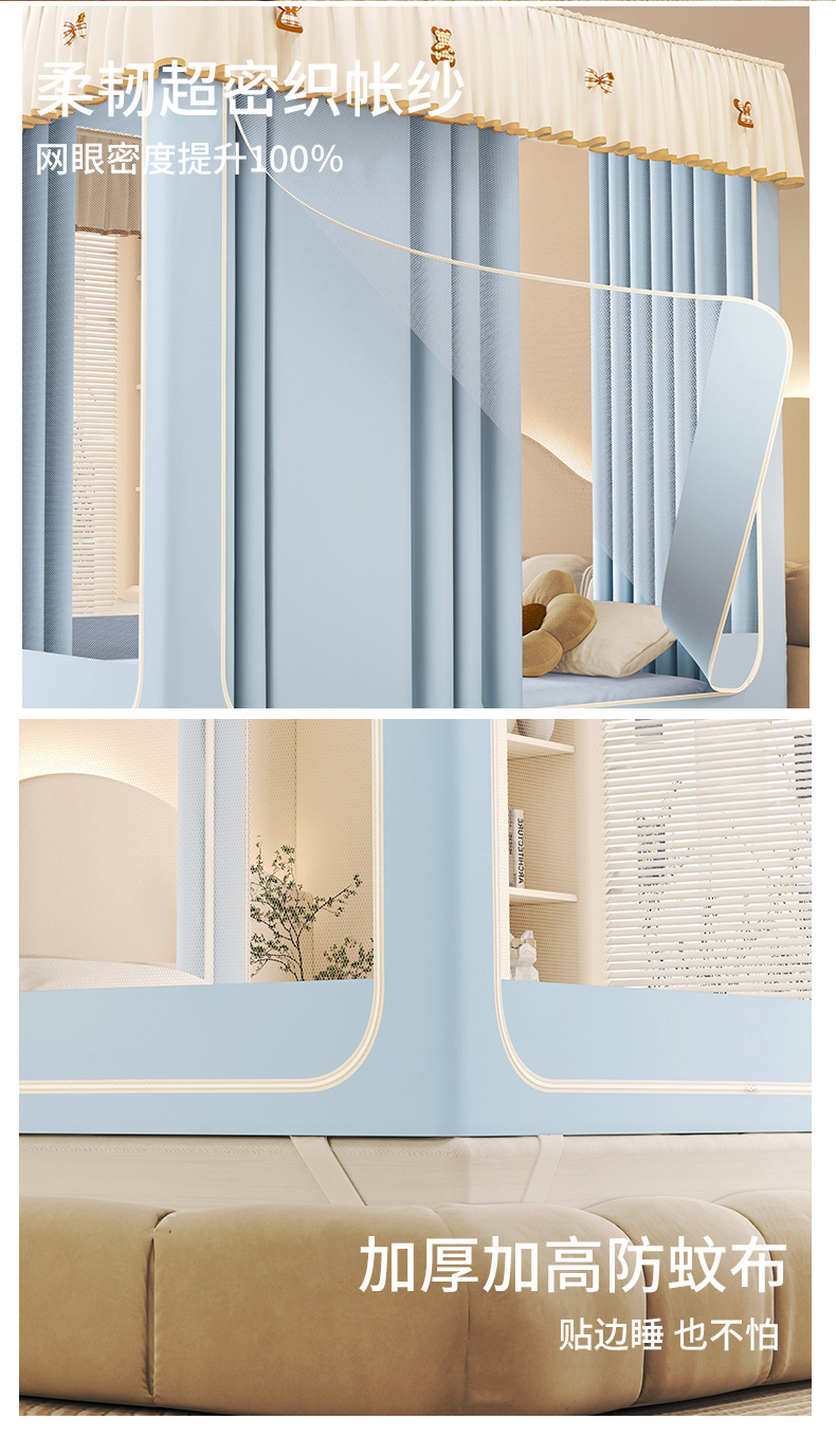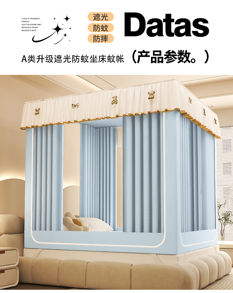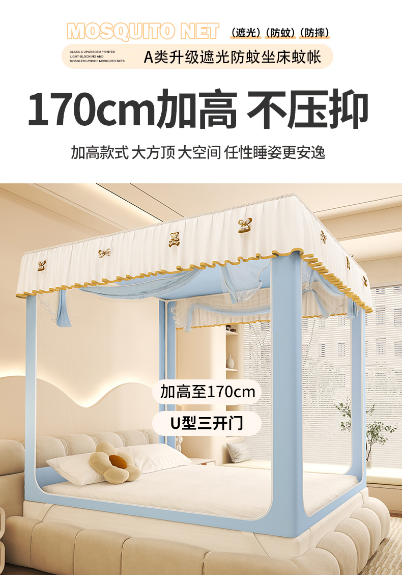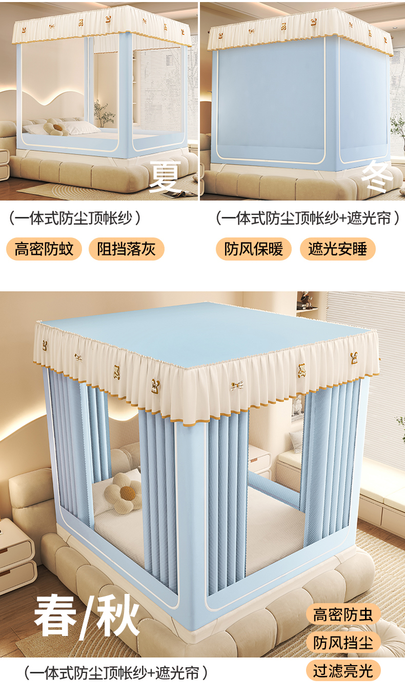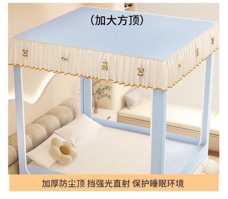 商品名称:初心家纺 2026春夏新款DIY小熊防尘顶遮光坐床蚊帐 天蓝(防尘顶无帘)