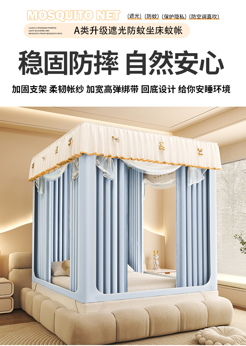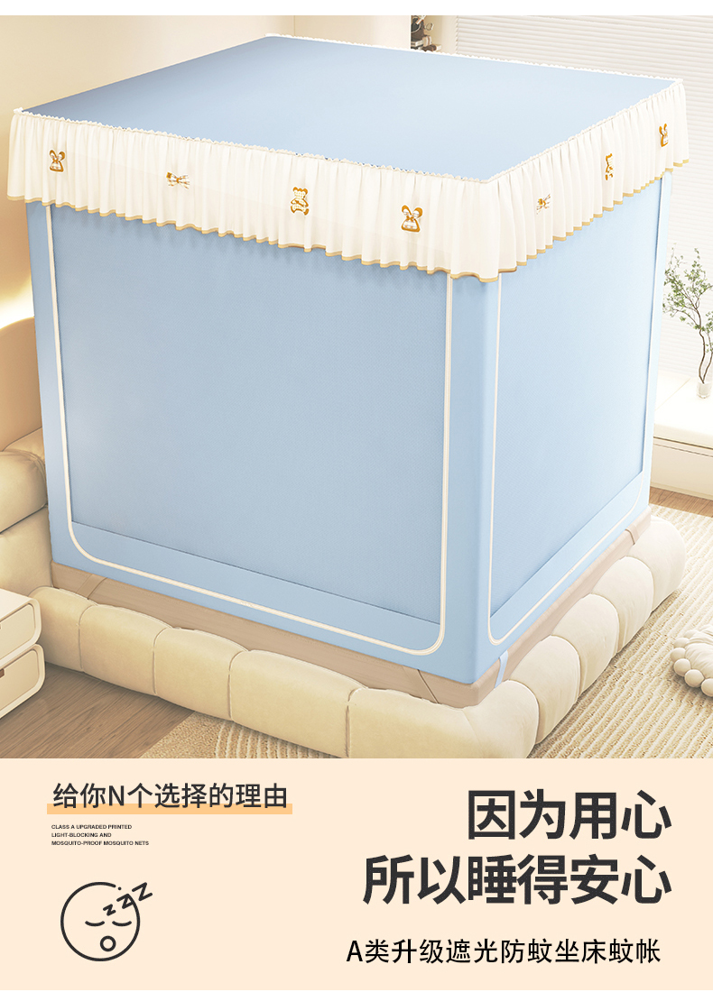 (总)初心家纺 2026新款时尚ins拉链式防摔坐床 床帘款遮光蚊帐,粉玉(带帘),粉玉(无帘),果绿(带帘),果绿(无帘),米黄(带帘),米黄(无帘),浅灰(带帘),浅灰(无帘),浅紫(无帘),天蓝(带帘),天蓝(无帘),紫色(带帘)
