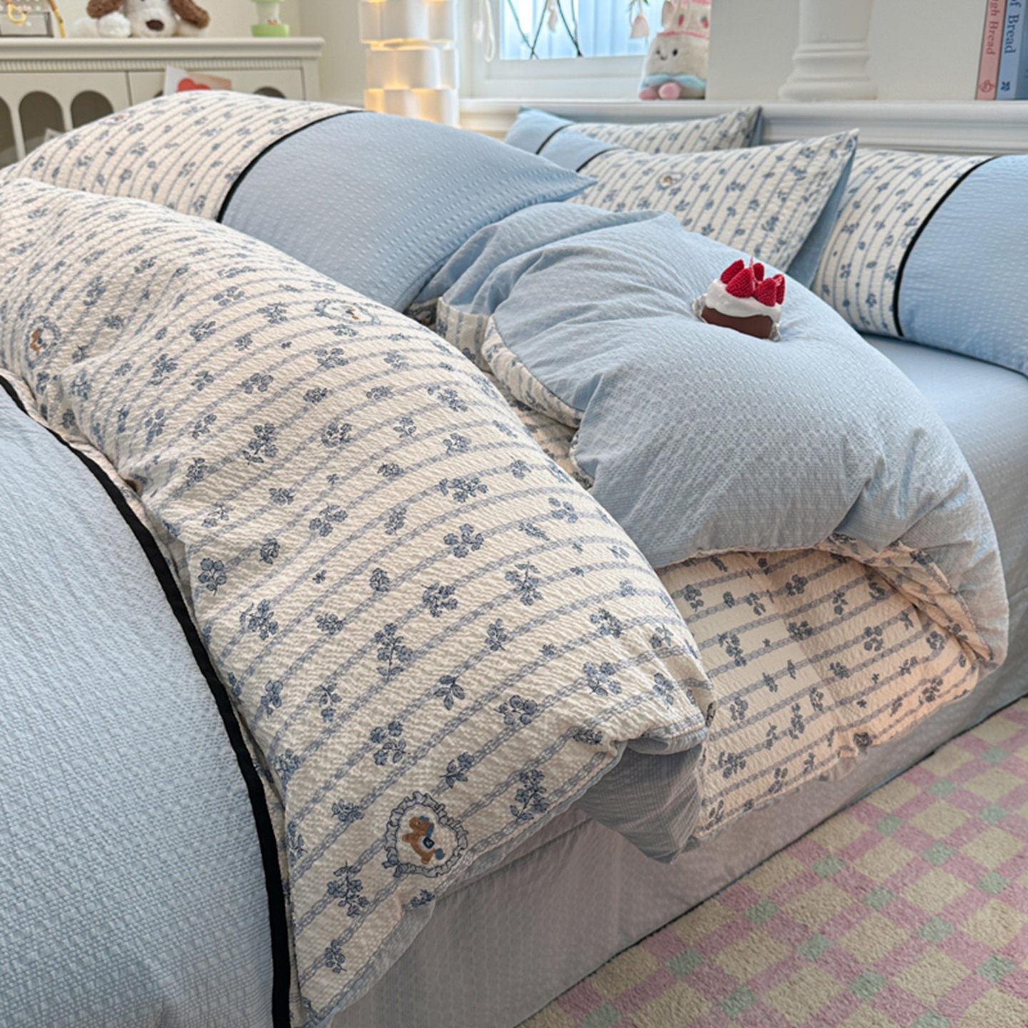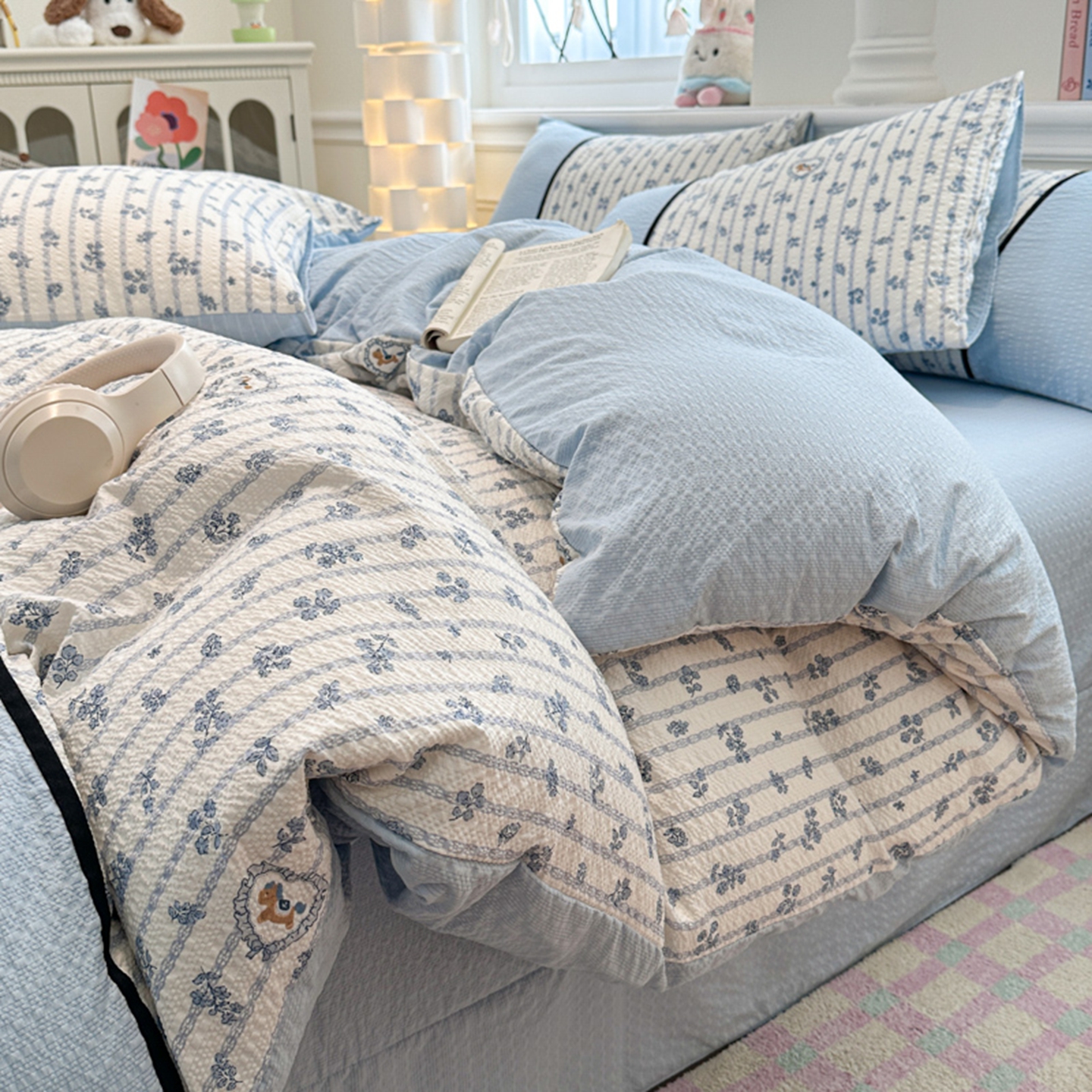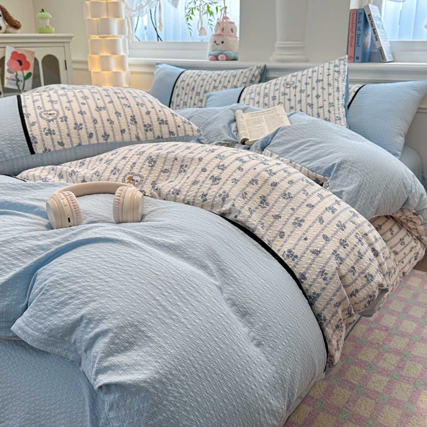 (总 )诺梵家纺 2026春夏新品高克重拼接泡芙纱泡泡皱皱纱四件套,旧梦蔷薇,豹心日记,贝丽丝,春日花信,格纹木马,花蝶梦,悸动,蓝纹序,蓝雾花,萌萌喵,奶油草莓