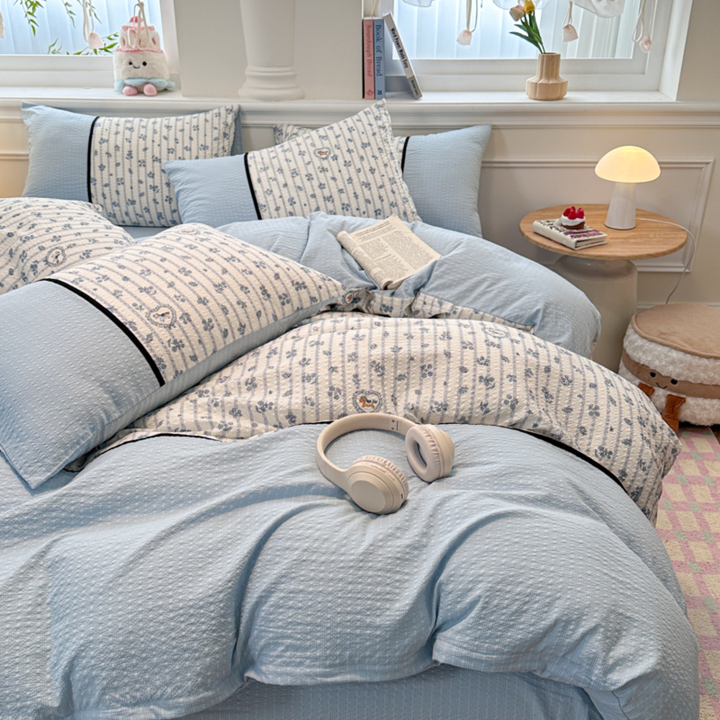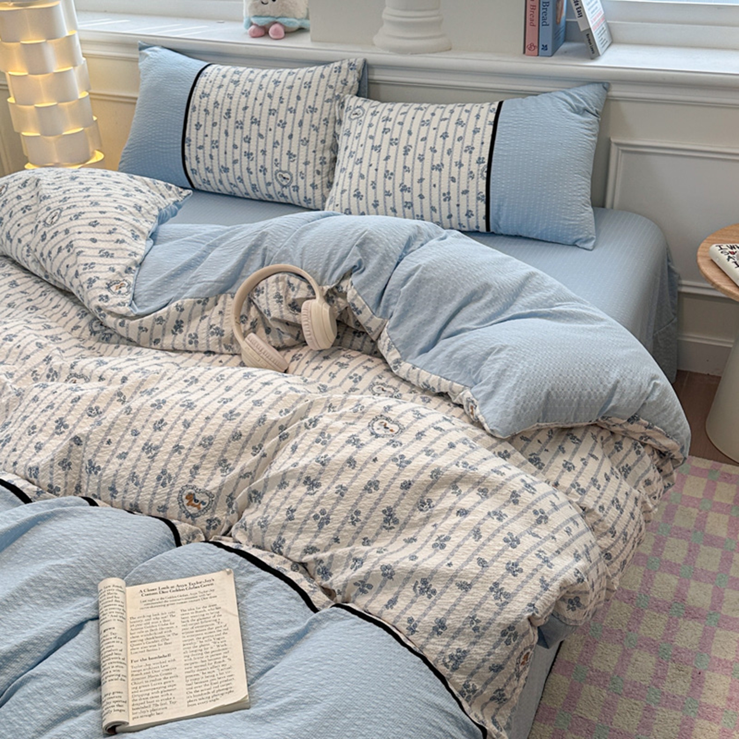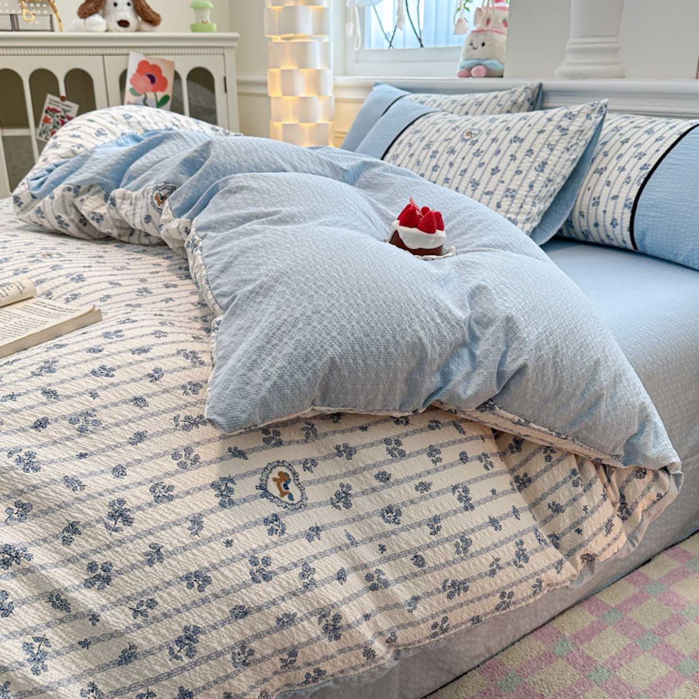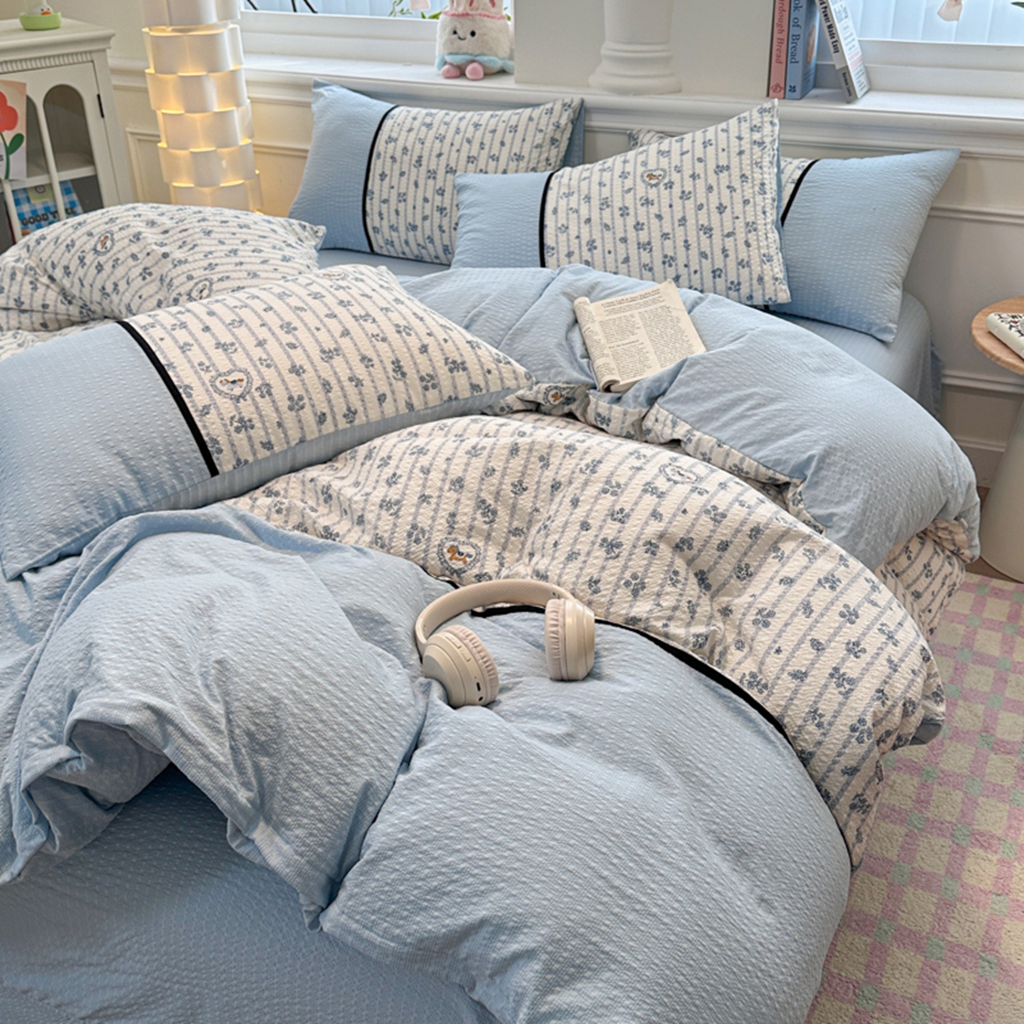 (总 )诺梵家纺 2026春夏新品高克重拼接泡芙纱泡泡皱皱纱四件套,旧梦蔷薇,豹心日记,贝丽丝,春日花信,格纹木马,花蝶梦,悸动,蓝纹序,蓝雾花,萌萌喵,奶油草莓