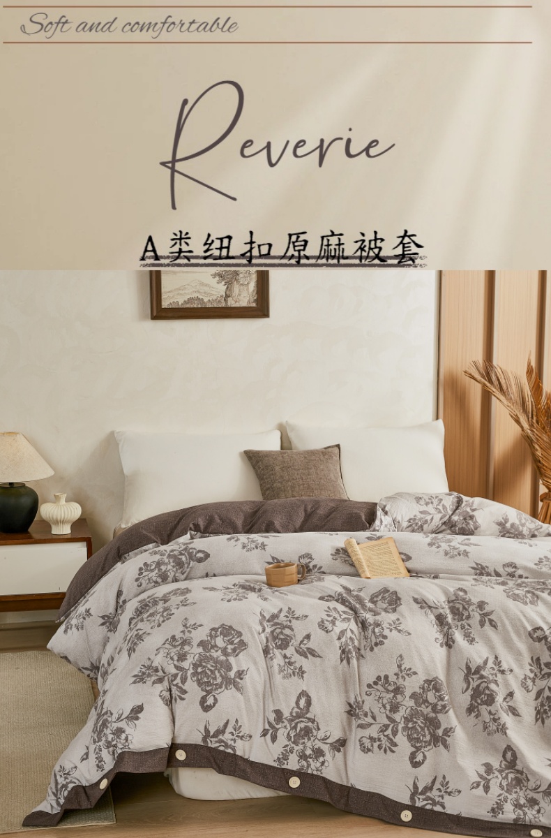 (总)圣比熊 2026新款A类原麻纽扣加厚被套床单宿舍双人床仿亚麻被子,瑞卡斯,古堡花园-咖,山花浪漫,花盏如约,安紫,花与蝶,春风序,花涧-灰,金锦,锦花,洛克-咖,沐枫,叶影,忆秋风,幽梦