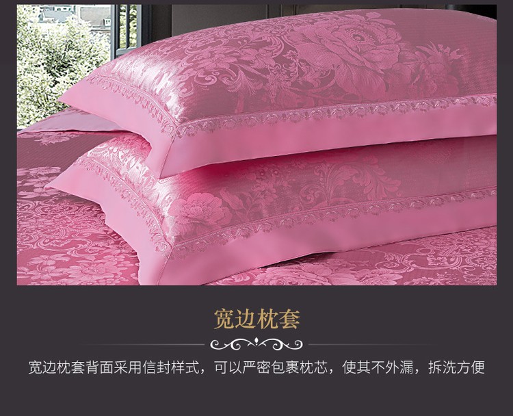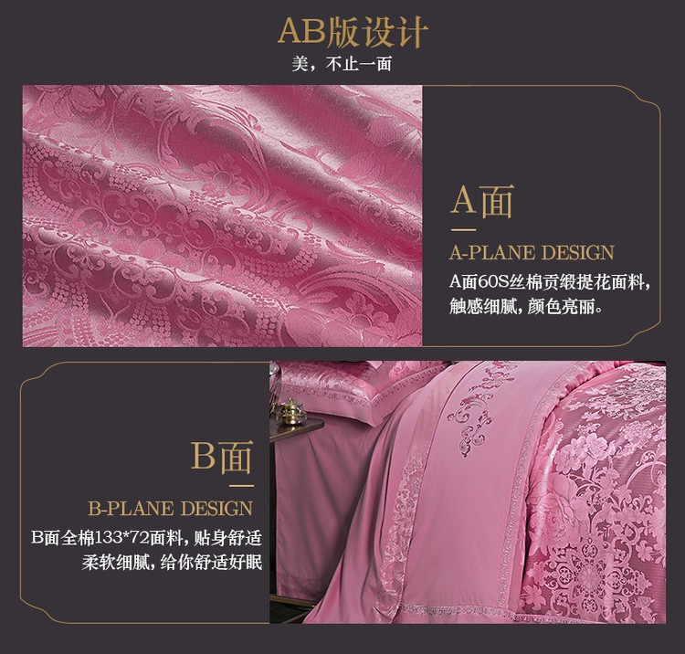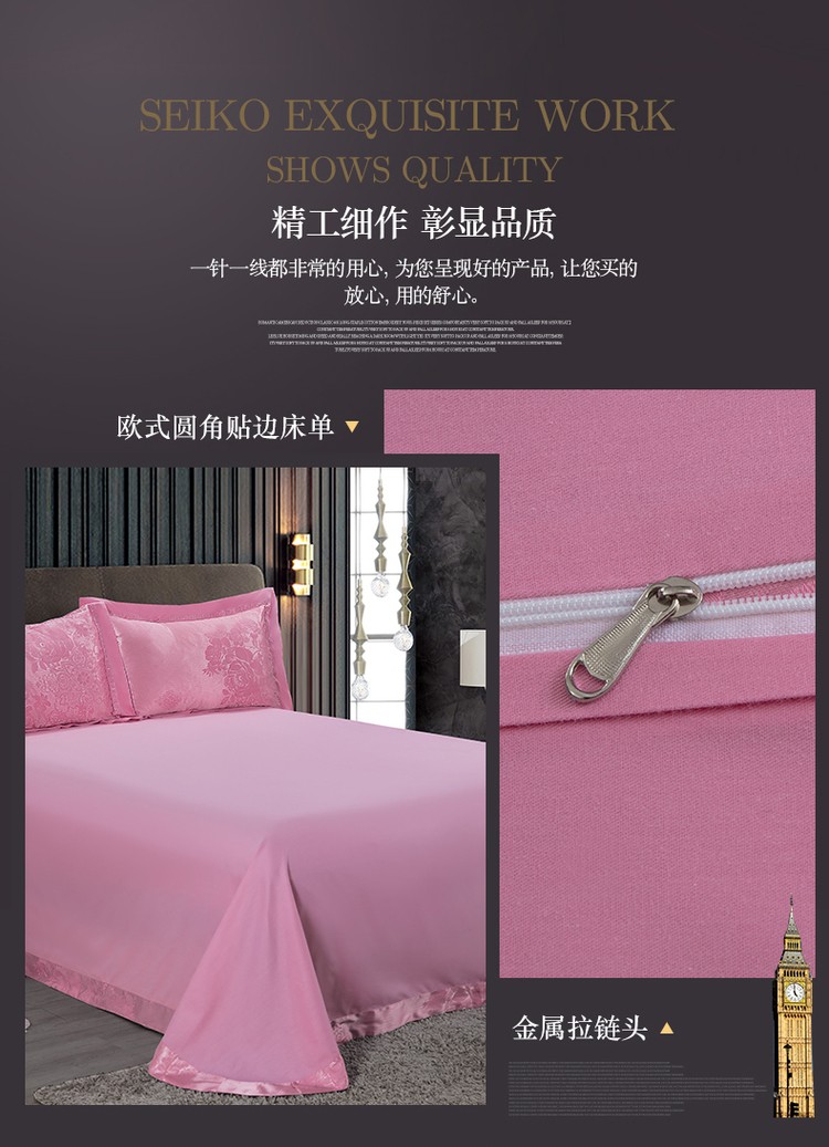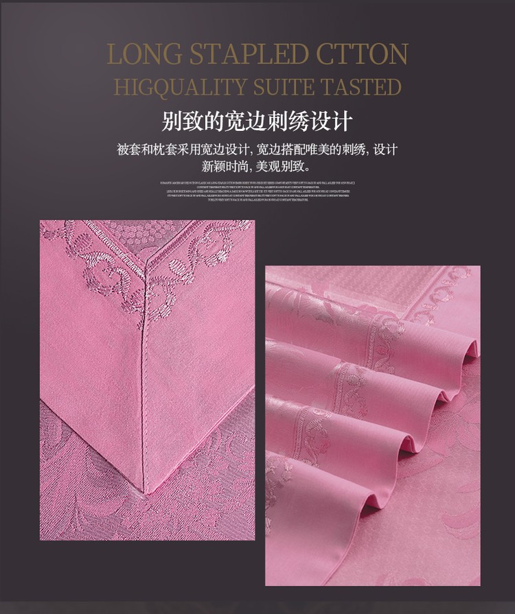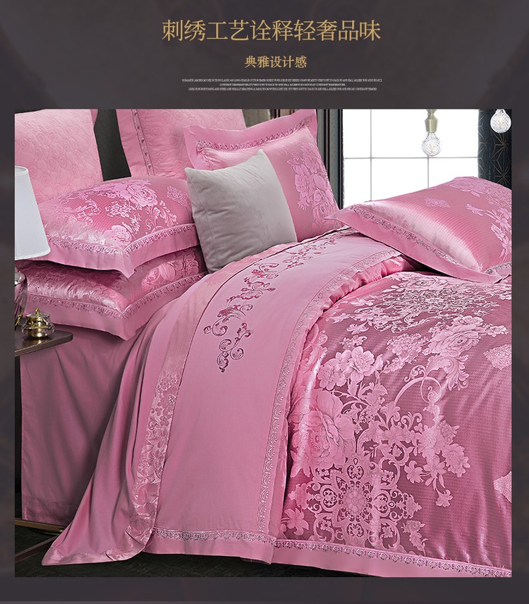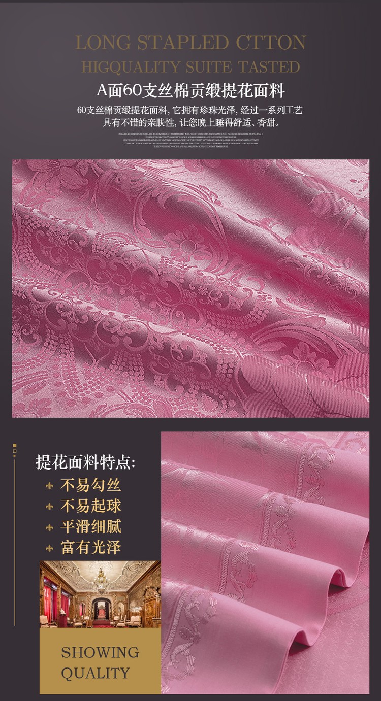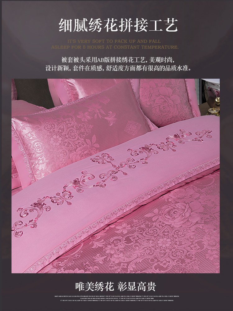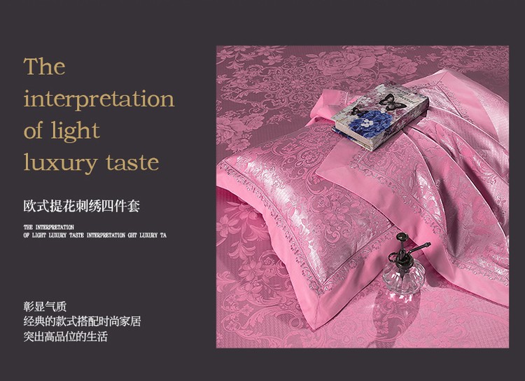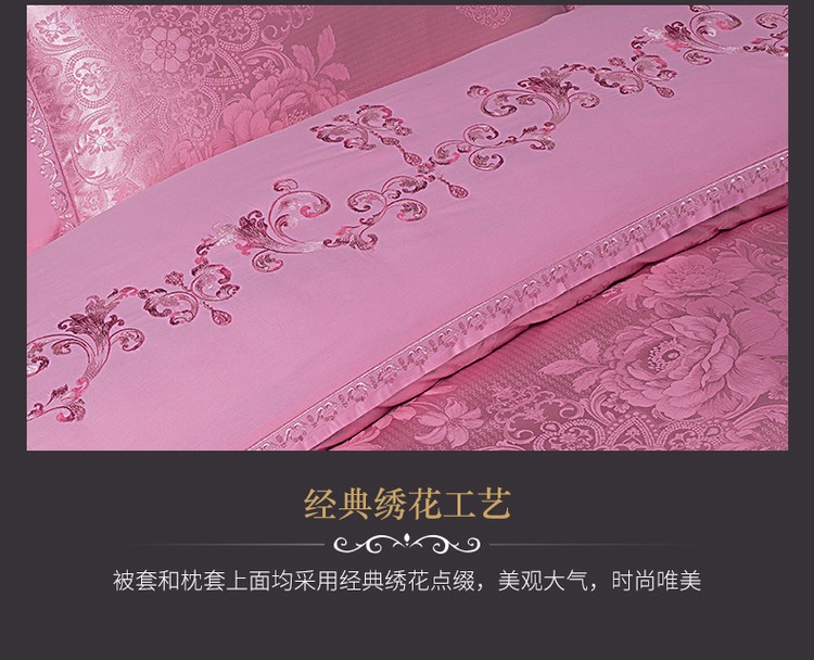 柔觉家纺 天丝刺绣贡缎提花全棉四件套,卡曼时尚-粉紫
