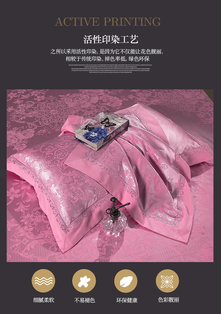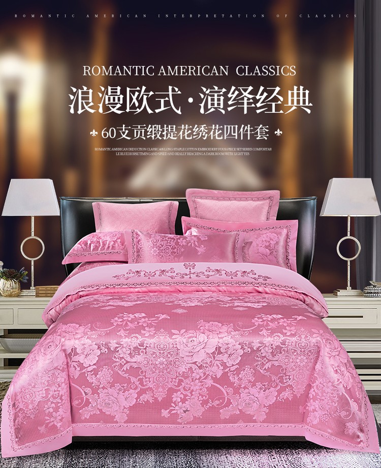 (总)柔觉家纺 天丝刺绣贡缎提花全棉四件套,艾利斯-兰金,宝琪-藕荷玉,罗娜恋歌-粉,奥威丽雅-蓝,奥薇丽雅(豆沙),龙凤交鸣(大红),罗娜恋歌-红玉,情恋花语(大红),罗兰庄园-靛蓝,莫奈情怀-蓝金,叶语浪漫-浅紫,约瑟情调-灰金,约瑟情调-魅紫,雅普诺-卡兰,小憩-雪青,科西利亚-金色,雅普诺-红灰,水汐-绸缎兰