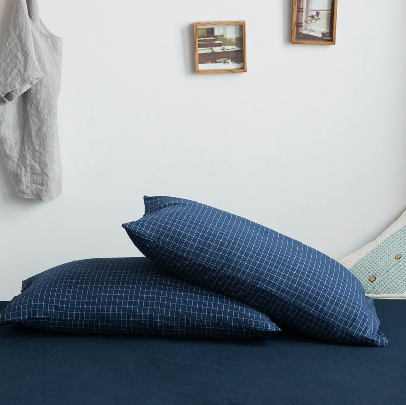 尚品本色 2022新款水洗棉套件系列-单枕套 小蓝格/对