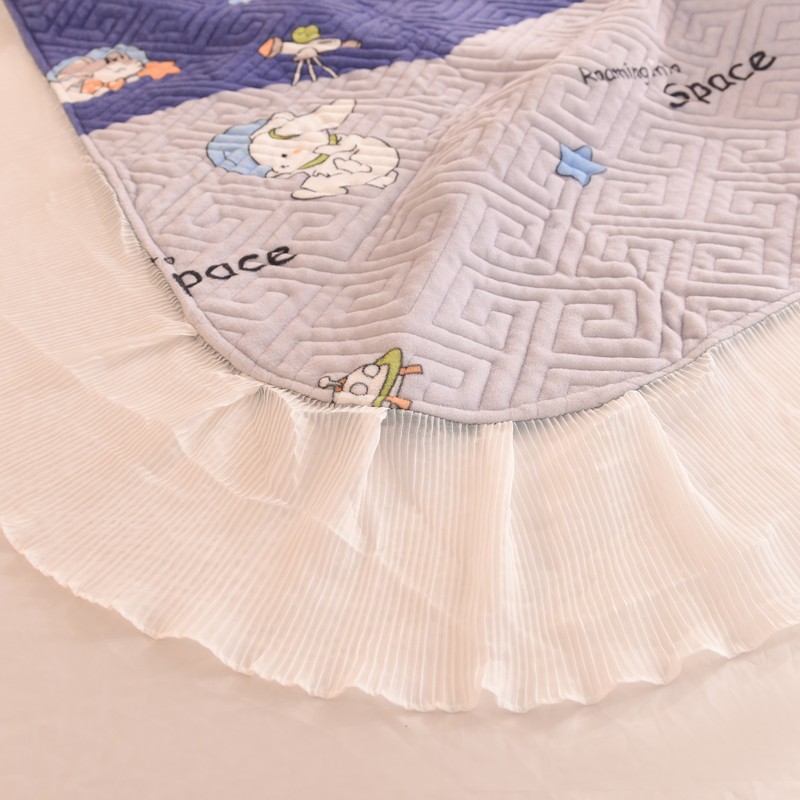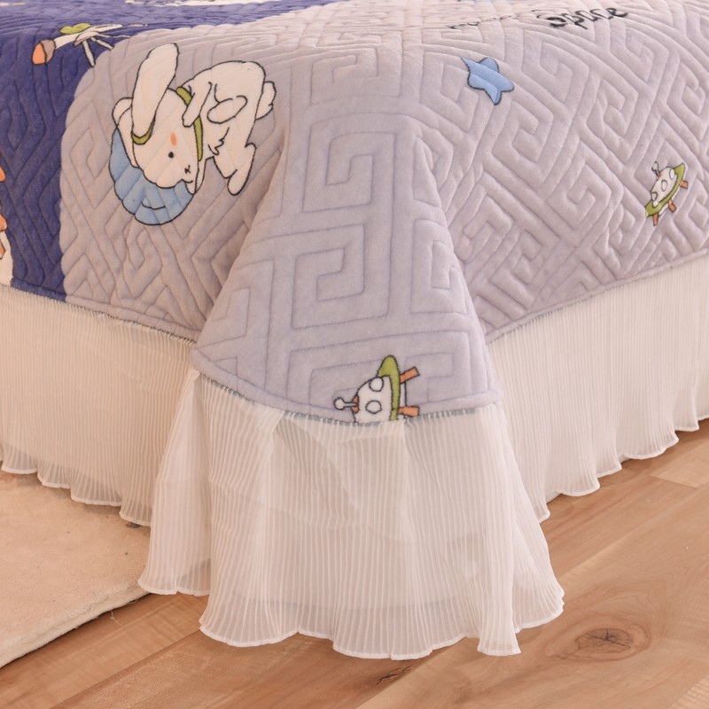 商品名称:2025新款牛奶绒印花夹棉花边 单品床盖 喵星球