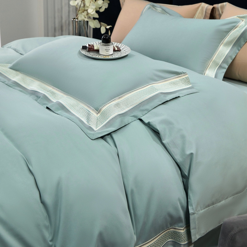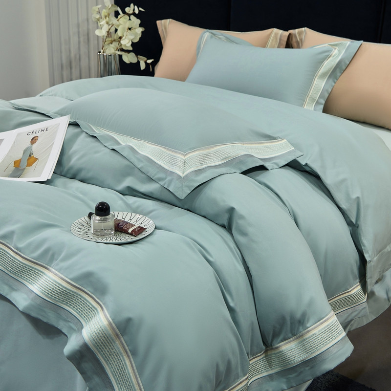 总榻尚家居 2023新款格瑞斯系列100贡缎长绒棉四件套工艺款四件套,格瑞斯紫,格瑞斯白,格瑞斯灰,格瑞斯蓝