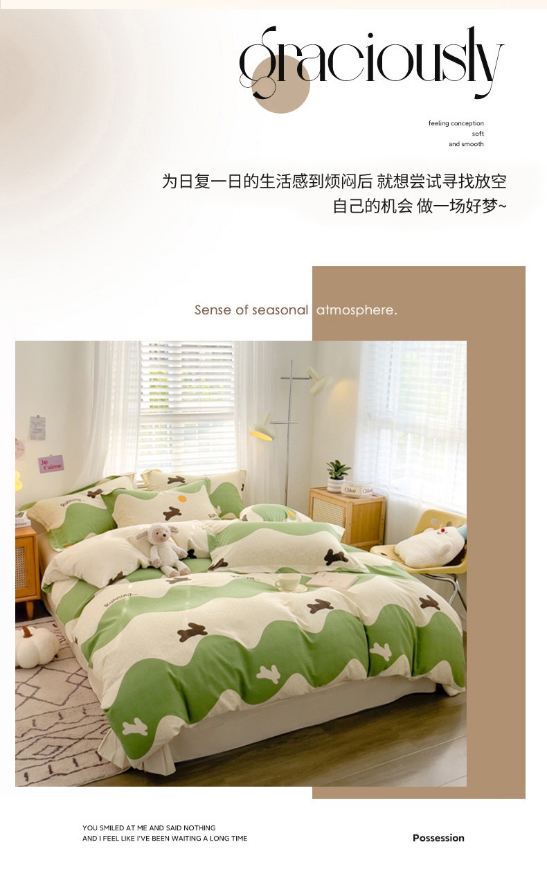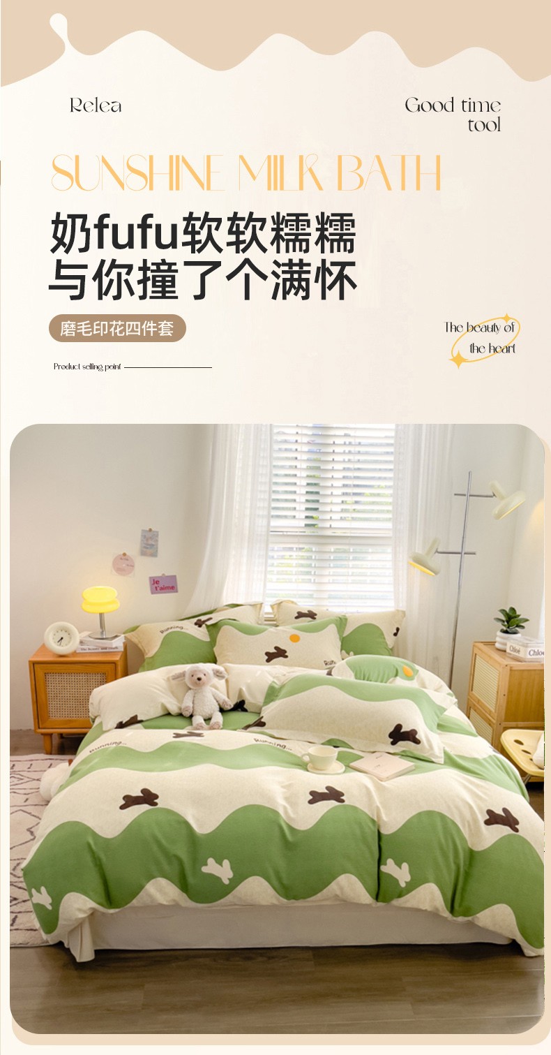 佰亿莱 2024直播新款小清新印花全棉加厚磨毛四件套 波浪兔